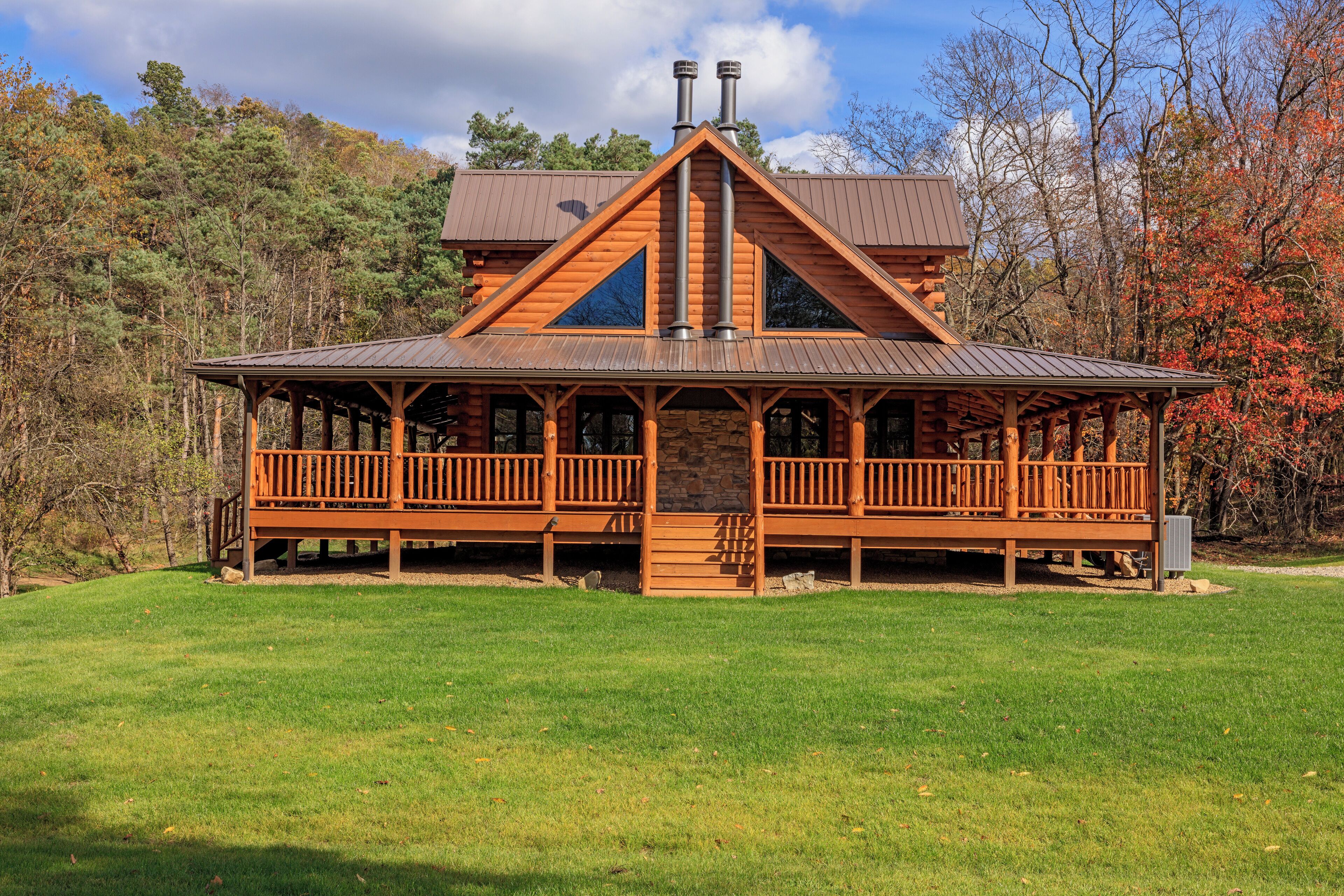 CABIN HIGHLIGHTS: Smart TV, board games, washer/dryer, outdoor dining area, gas & charcoal grills, 2 fire pits, wood-burning stove