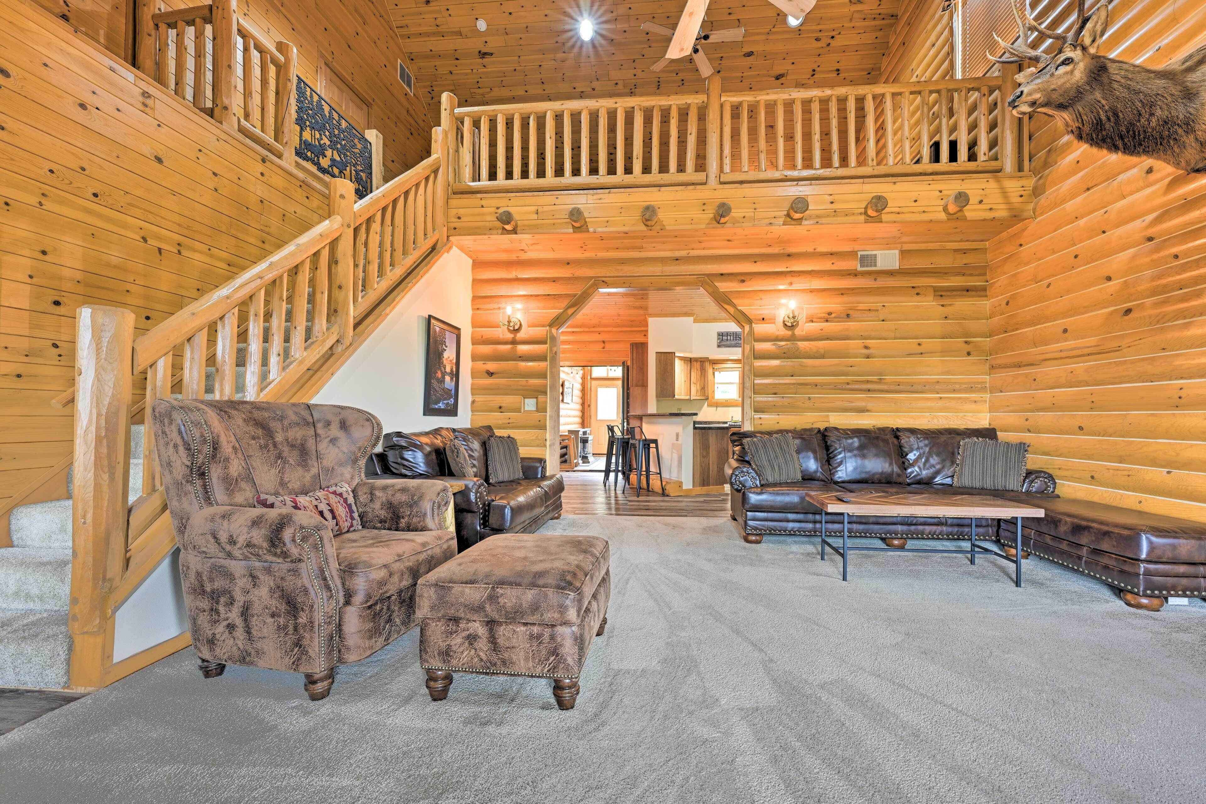 Welcome to "DEVILS LAKE ESCAPE," a stunning property with 5 bedrooms and 4 baths. Recently renovated, this log home is one of our three Premier Partner Properties. Situated in the serene Tranquility subdivision, you won't find a better location than this! With over 3200 square feet of living space, the property offers ample room for relaxation. There are 8 beds, two full-size sofas, and a queen air bed for any additional guests. While the cabin is designed for 12 adults, it can comfortably accommodate up to 16 people, including children.
