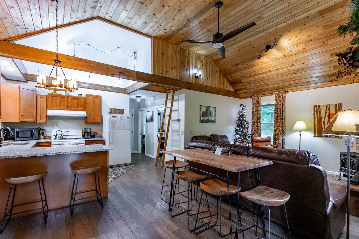 - "Good location, well stocked. Met all my needs. Would definitely want to rent again." - "We had a great time and appreciate Christine accommodating us at the last minute! Location was great and house was very well stocked with cleaning supplies, kitchen utensils, soaps, shampoo, etc. We hope to visit again one day!" - "This cabin was absolutely perfect for our family. We were close to the ski resort. Everything was very well stocked and I’d we needed anything we found it at Freds! Beautiful place and we hope to go back when there is more snow! Thanks for letting us stay!"