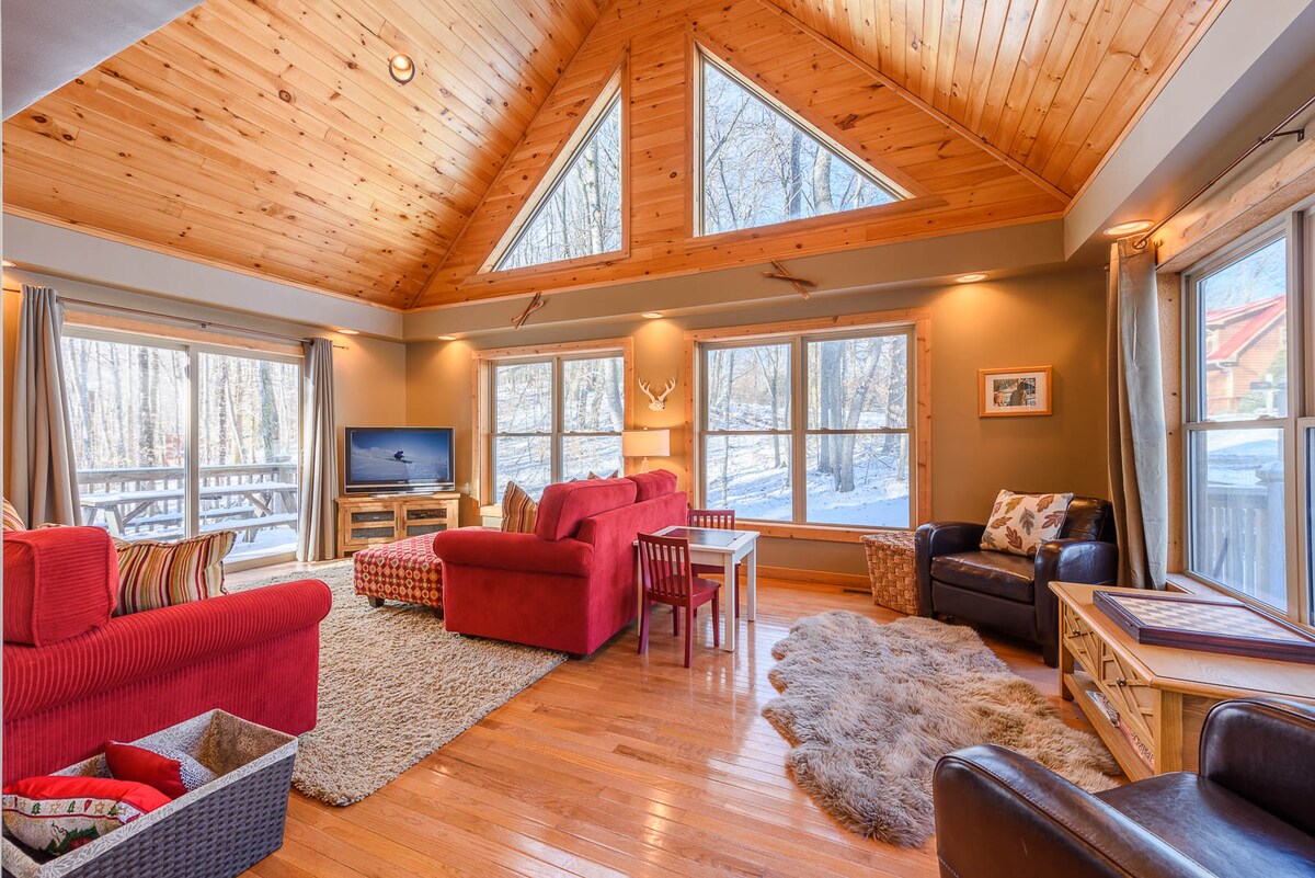 Visit and enjoy our newly renovated chalet. Sleep heavenly in one of our two bedrooms, one with a queen size bed and the other one with a bunk bed. New fully equipped kitchen and bathroom with a tub/shower have new appliances and granite countertops. Warm up in front of the gas fireplace or explore our 55 inch Smart TV, free WiFi is provided. The cabin offers parking for two cars and you have your own keypad entry to the cabin.