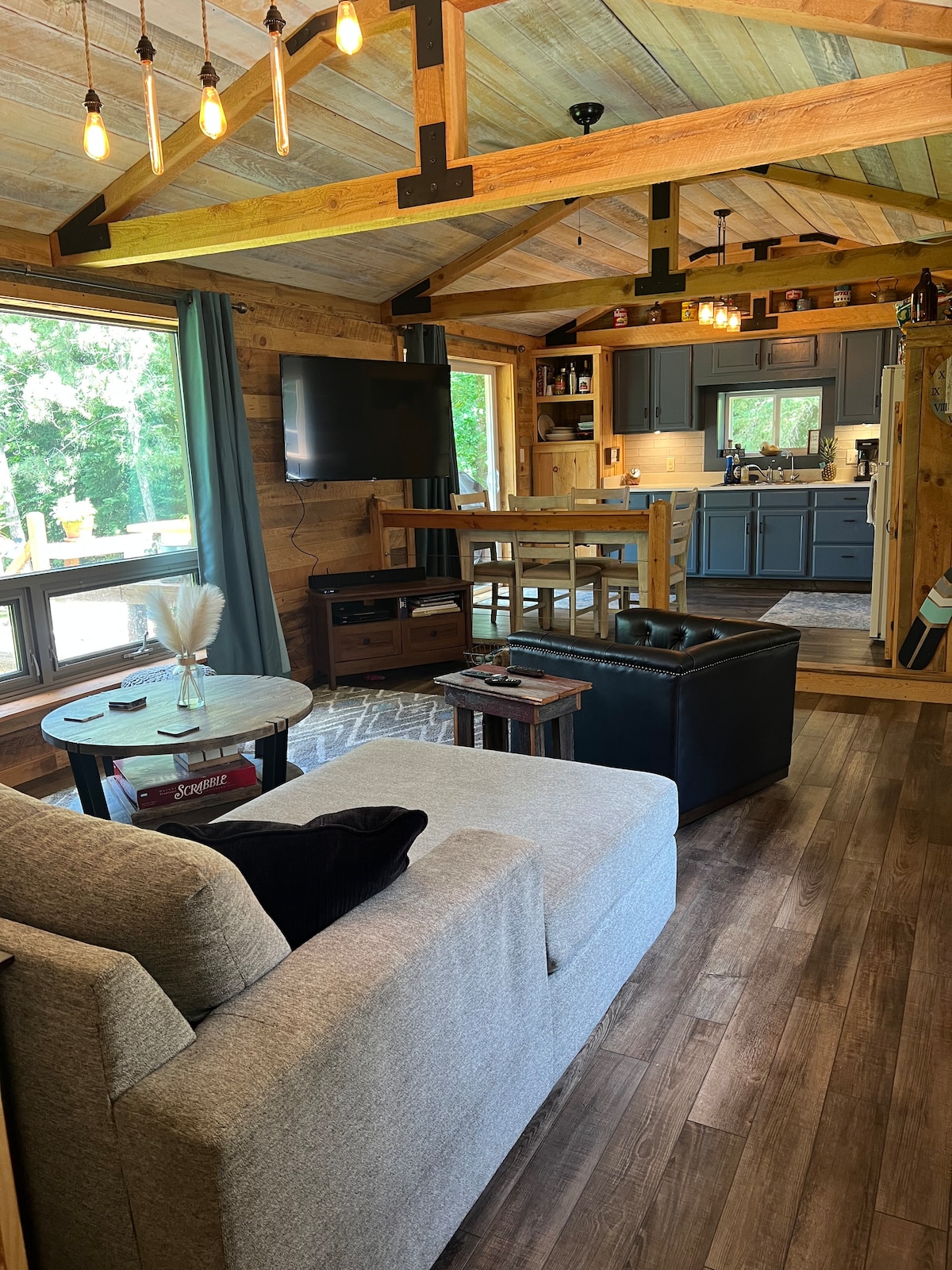 For those who still like to be connected to the outside world, we have created a "smart cabin", complete with Wifi, a large T.V. with Roku (including Netflix and Hulu), Alexa, and even a bluetooth bathroom fan so you can listen to your favorite music while taking a shower.