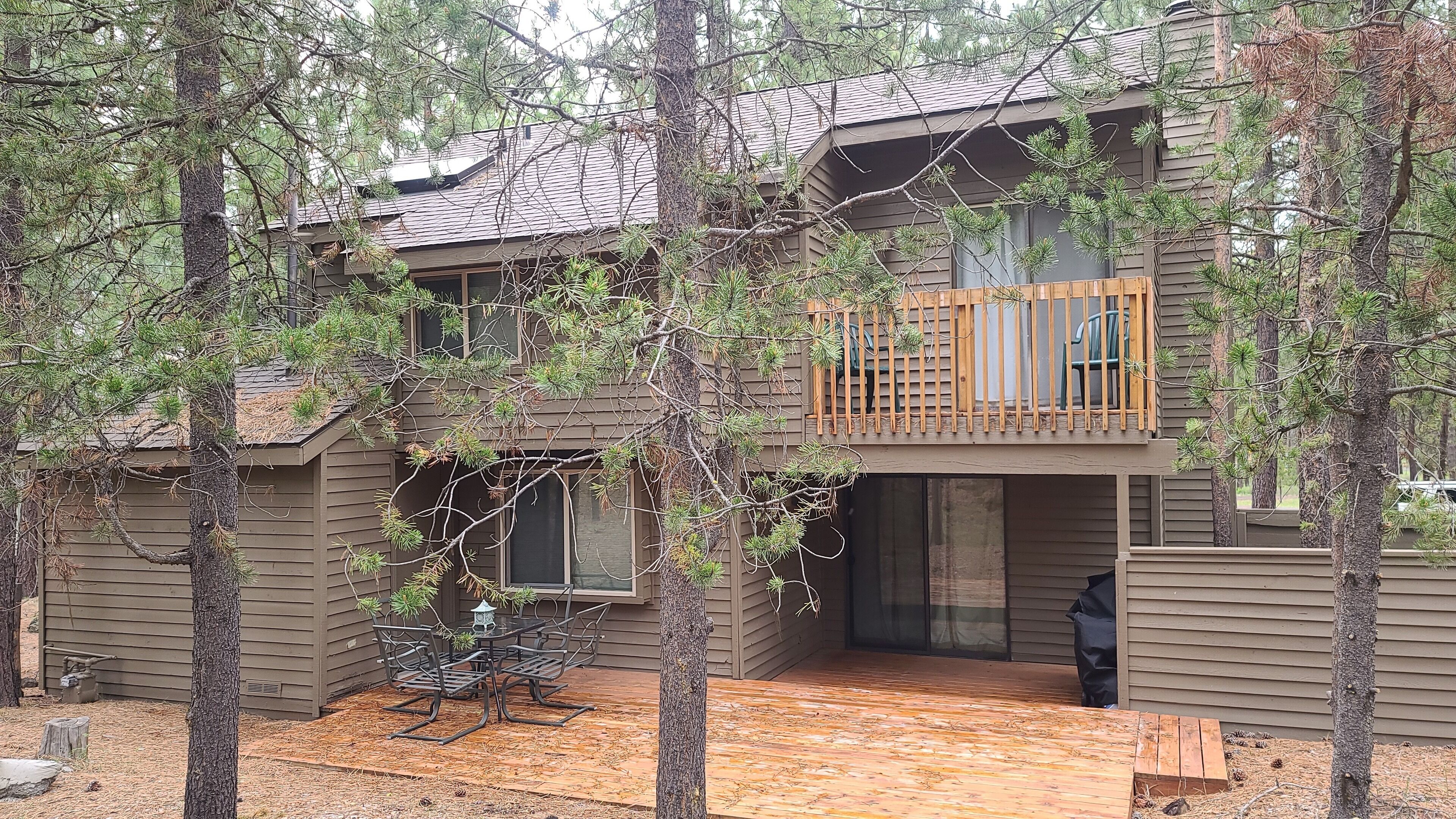 This is high desert heaven! This is a fractional cabin at the Eagle Crest Resort outside of Bend, OR. Super peaceful and quiet backing onto a golf course. The cabin is two stories, three bedrooms with two bath. There is a full kitchen, with dishes, cutlery and pots/pans, and an outdoor dining area with grill. You also have complimentary access to the pools and fitness center offered at the resort. Great base for skiing and hiking or hanging out in Bend, Sisters and Redmond.