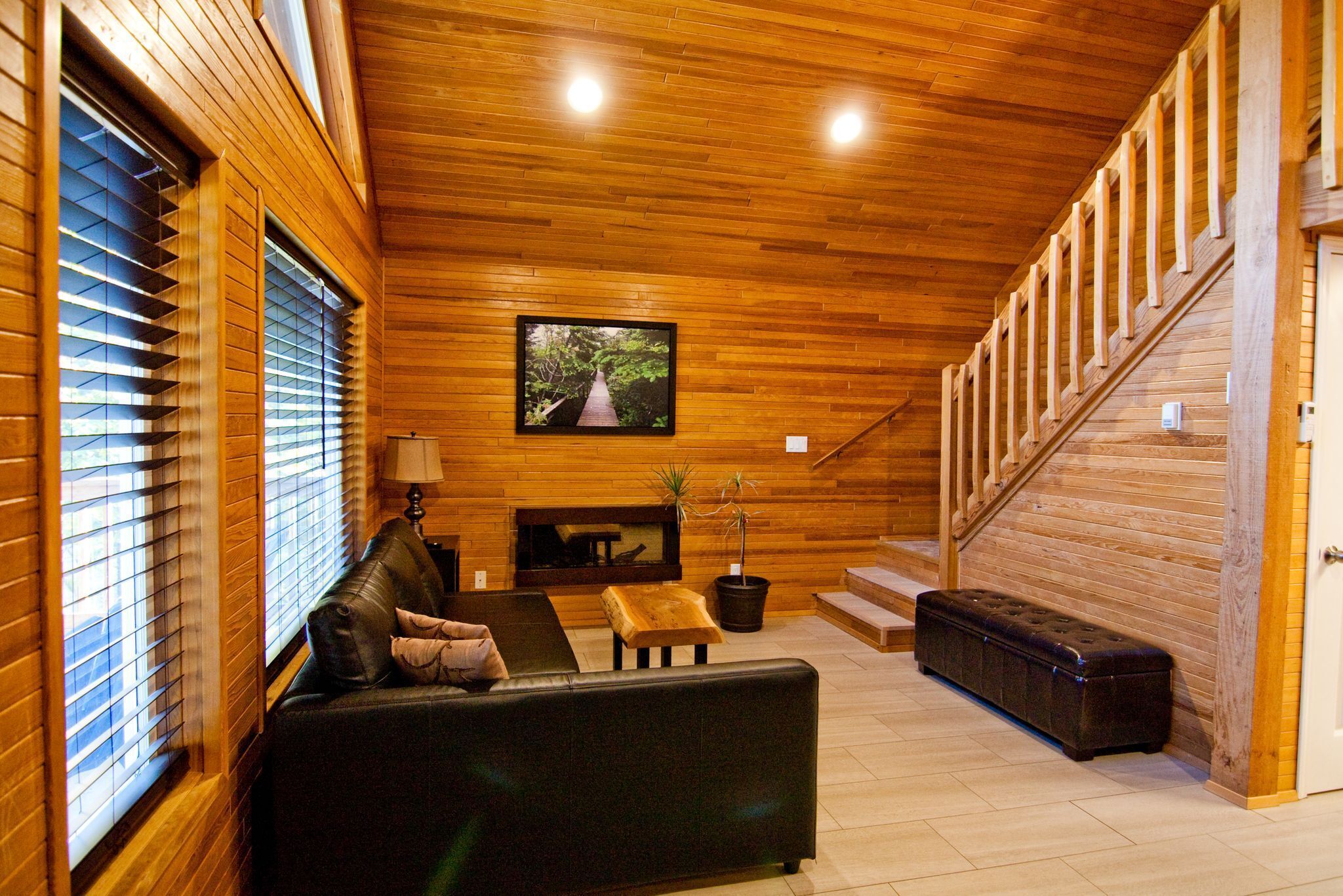 THE CABIN. This west coast contemporary, two bedroom, 1 1/2 bath cabin is located in Black Creek, Vancouver Island. Nestled on 6 acres , closest neighbour being the primary house at an acre away. The Cabin is perched close to the edge of a spectacular nature view-offering amazing morning and evening light. Sit on the deck and be amazed at the amount of stars - you’ll witness the best that Vancouver Island has to offer. Explore the private trail down to a private beach on the Oyster River. Relax, and enjoy listening to the birds on the large terrace, or simply enjoy your Netflix account on the home theater. Regardless of what you want to do, this place has something for everybody that wants to rest & switch-off.