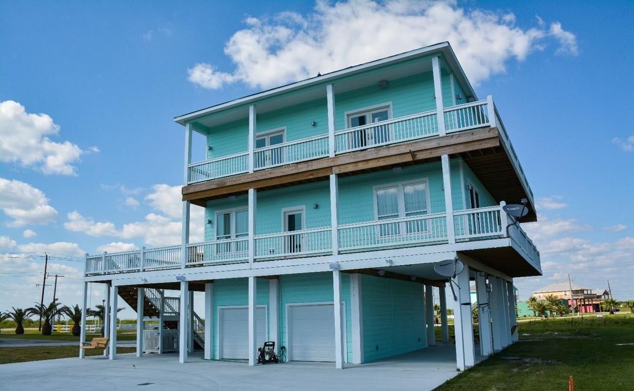 This spacious, luxurious, sea-foam green retreat with easy beach access (<1 minute by vehicle, <5 minutes walking) dominates the landscape of Crystal Beach's famed Holiday Beach. With fun, sun, and relaxation, Holiday Beach Sunset will help create lasting memories for you and your group. In addition to 4BRs, 4.5 baths, and sleep capacity for 15-17, this contemporary getaway features: