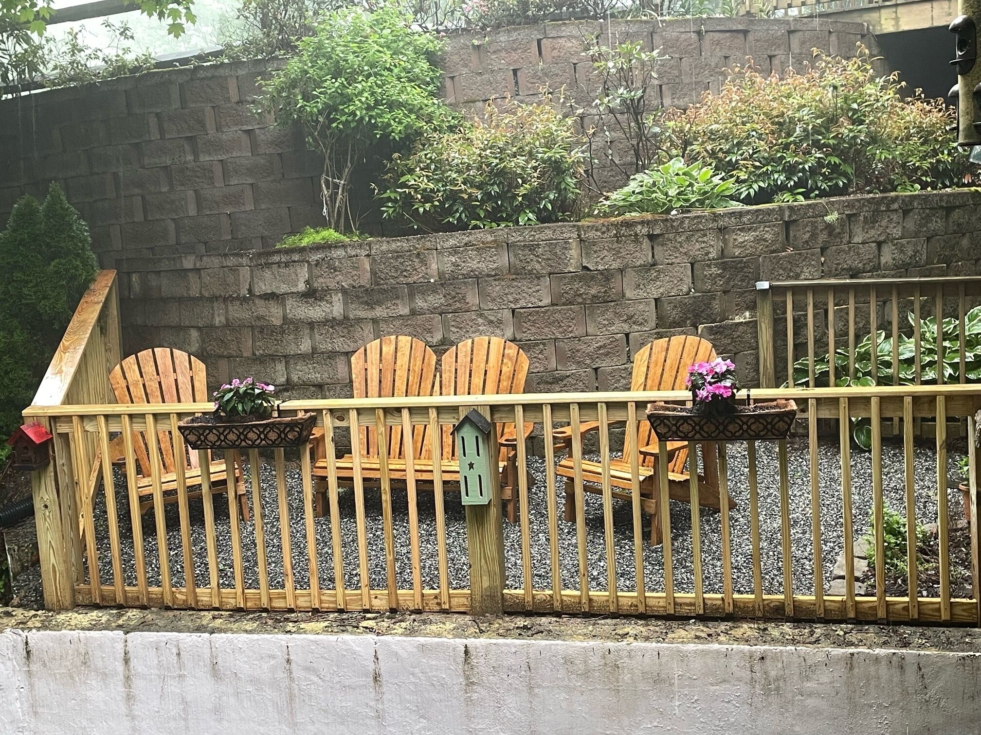 • Open deck overlooking the gas fire pit to enjoy the sounds of Mother Nature