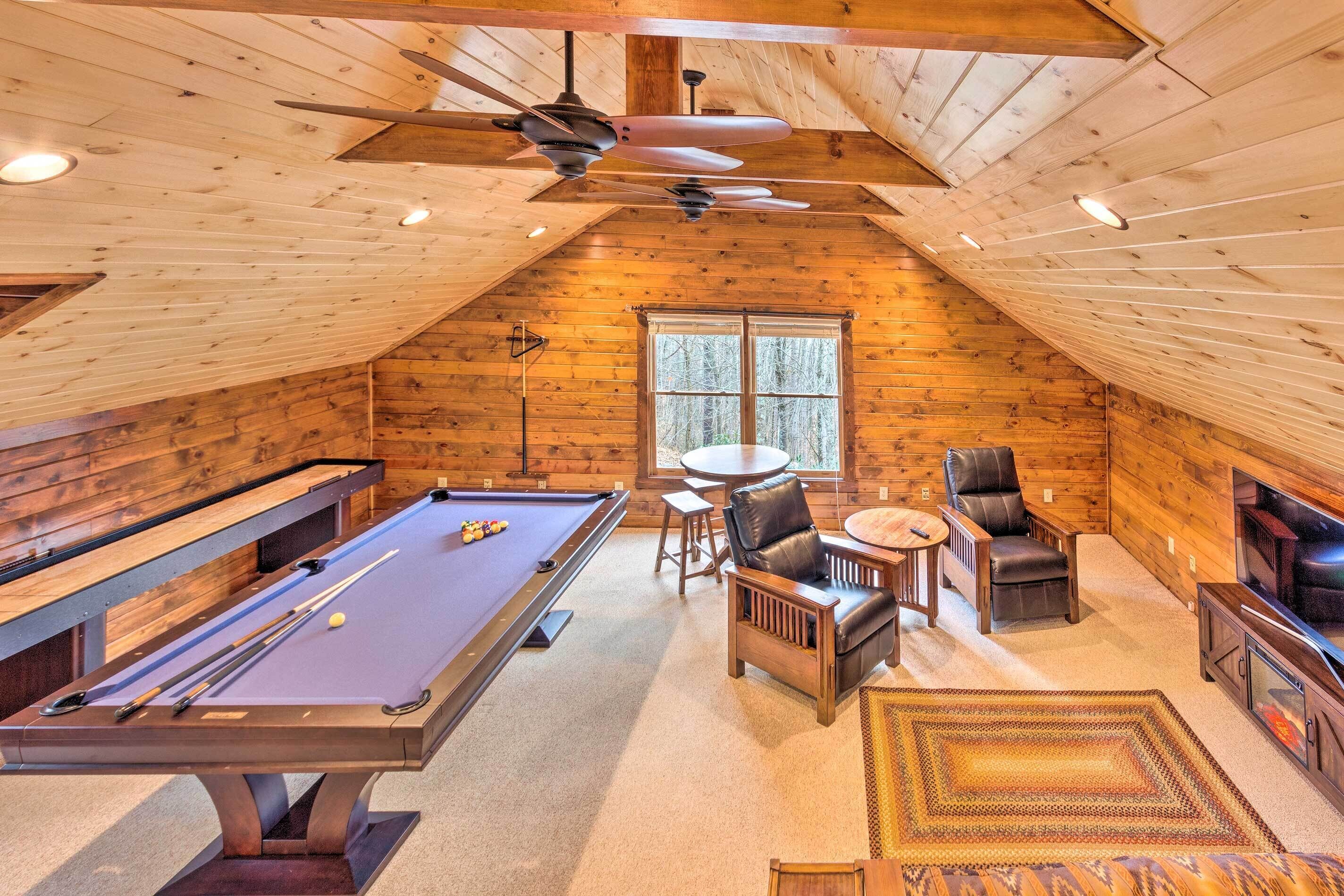 The game room offers a full size pool table, card table, many board games and additional seating. There is also a LG Thinc with Smart Remotes TV with streaming apps. This is a great way to spend quality time with each other creating memories that will last a lifetime!