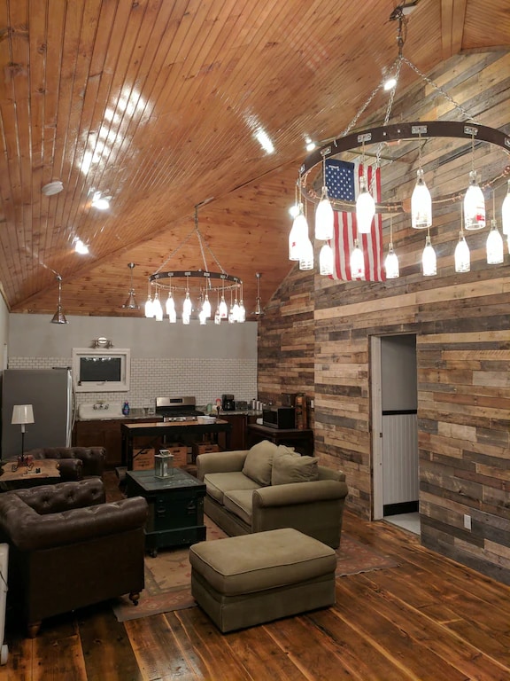 This two-level home has it all! The living room has a TV, vaulted ceiling, hardwood floors, a blue sofa, and beige recliners. The futon doubles as a sleeper and you can relax and gaze out on the water or head out onto the deck for some grilled goodies! Another seating area has a comfortable chair surrounding a wood-burning fireplace.