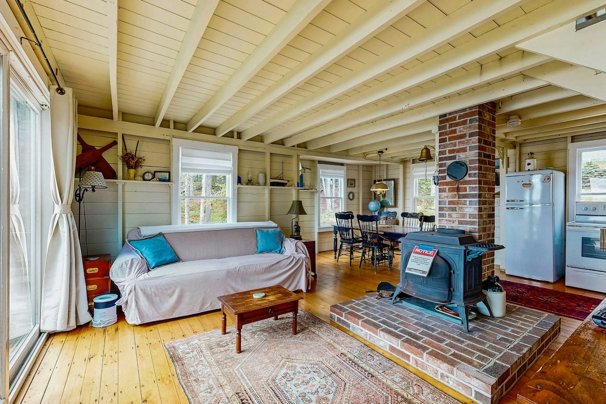 The Pine Cottage at Harborfields is right on the water with a great view up and down the harbor from its deck and picture window the living room. The living room also features a woodstove to help take the chill off spring and fall.