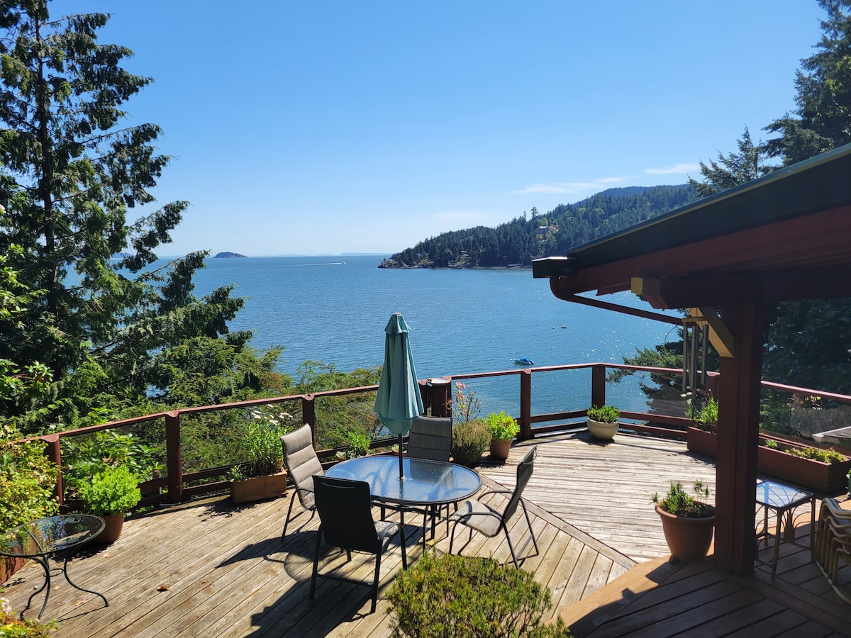 Your own private beach, stunning sea, mountain and distant island views, "Ayubowan" is a totally private, very safe, serene and peaceful home just a few minutes ferry ride away from downtown Vancouver. Give yourself the rare special opportunity to stay in our island home that that has been so loved and cared for during the past two decades. The house has a 30-day minimum stay.