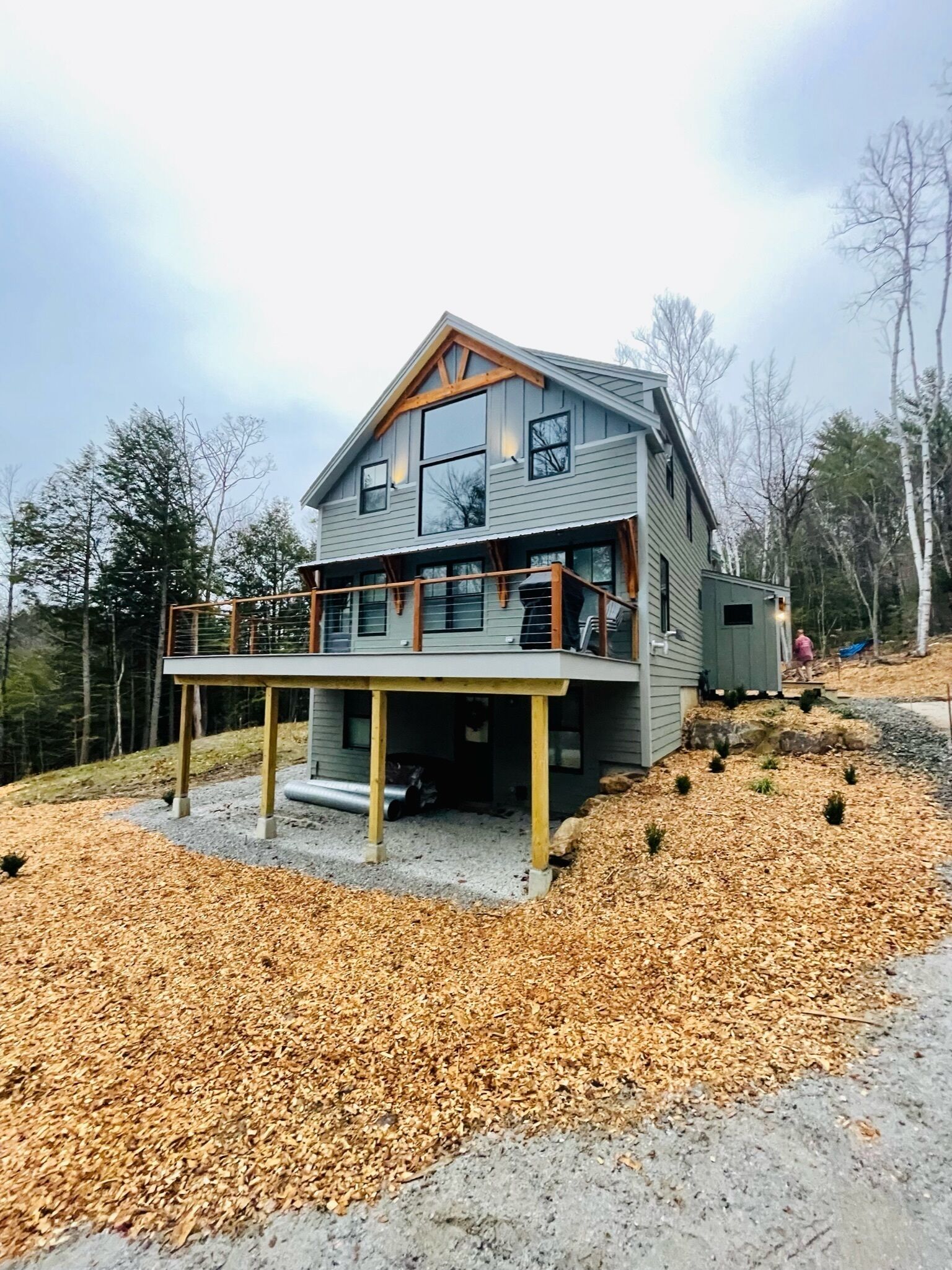 Stunning cabin in the heart of the White Mountains of NH. Cozy up in this beautiful luxury lodge which offers great views of the mountains and privacy throughout your stay. This gorgeous cabin boasts three bedrooms, three private decks, a loft for studying or relaxing with a dedicated work space, and a private outdoor area for grilling or having a campfire. Elegantly placed on the side of Campton Mountain the home is just minutes from I-93 and Waterville Valley.