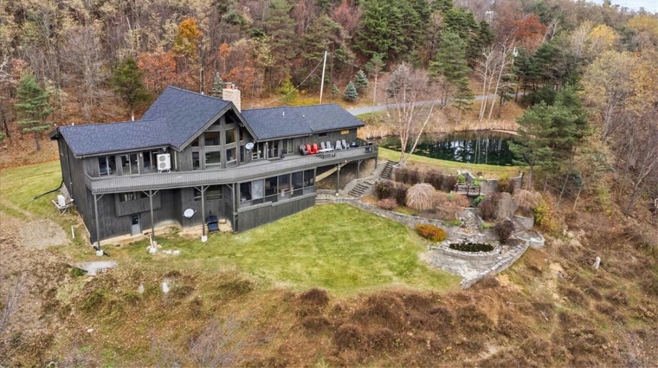 This spacious log home offers the perfect balance of privacy & accessibility, set back from the road, surrounded by trees & beautiful farmland yet just minutes from town (Canandaigua).