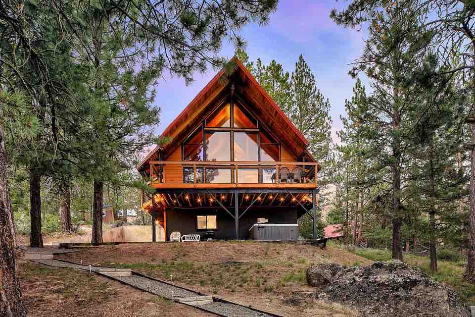 Our cozy a-frame cabin was hand-built in the 70s and recently renovated, so you still get all the character and charm but with a cozy modern vibe. We are set amongst the pines with views of Cascade Lake and a peaceful open meadow. This 1900 sqft cabin has three floors and a unique layout with vaulted cathedral beams. The 800 sqft deck has a hot tub. And there is a fire pit out front. Just down the road from Tamarack Resort and world-famous ice fishing.