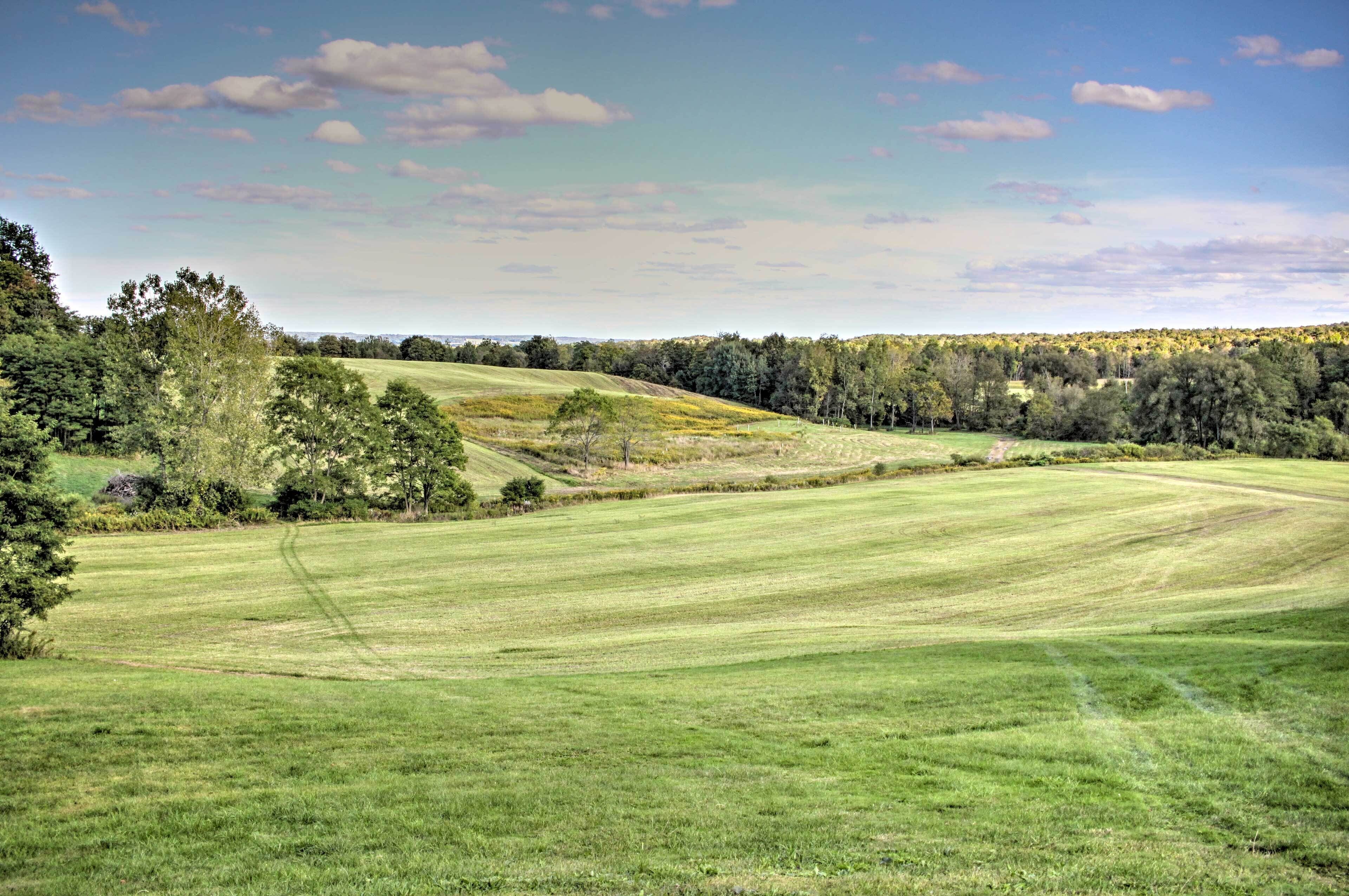 Enjoy this picturesque and cozy cabin set on a 150-acre farm, truly idyllic in all four seasons. Sit on the porch and take in the beautiful views of rolling hills and catch a glimpse of the horses and cattle roaming the farm. The cabin includes one bedroom with a king bed and a spacious loft with four twin beds.