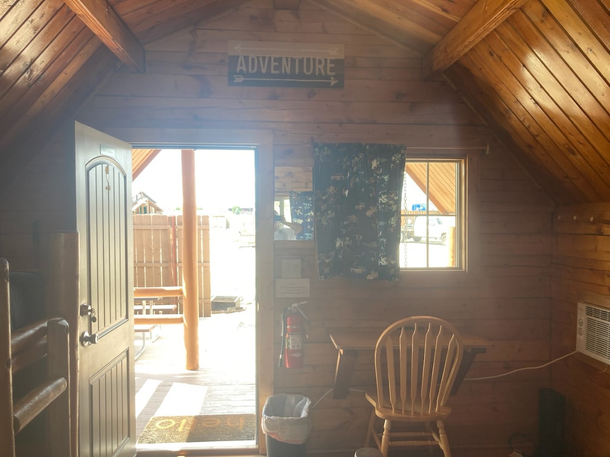 Imagine a cozy, rustic cabin nestled amidst the breathtaking scenery of Wyoming. Your charming little cabin offers a serene escape. The cabin's weathered wood exterior and charming porch exude a warm, inviting atmosphere. The tiny porch, adorned with a gentle swing, beckons you to unwind and savor the tranquility. In the evenings, gather around the fire pit for a cozy night under the stars. (Pet Friendly)