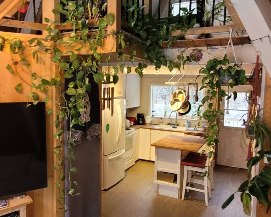 The Lily Pad is a private, tiny studio cottage, nestled in the trees at the back of our beautiful property. The river and mountain views with the industrial/contemporary decor offer a stunning portrait no matter where you look.