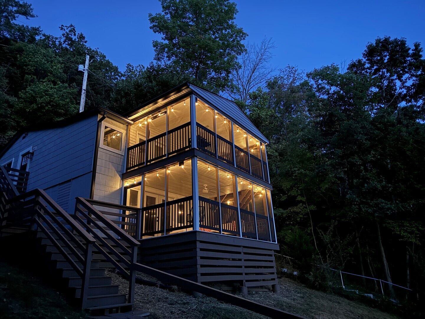 Welcome to "Eagle View," a serene 3-bedroom, 2-bathroom lakeside retreat on the beautiful Claytor Lake. This private waterfront home offers breathtaking lake views from every angle. Enjoy the area's tranquility on one of two screened-in porches: one with a charming dining space and the other with a cozy wrap-around couch, both adorned with cozy string lights and outdoor heaters for year-round comfort.