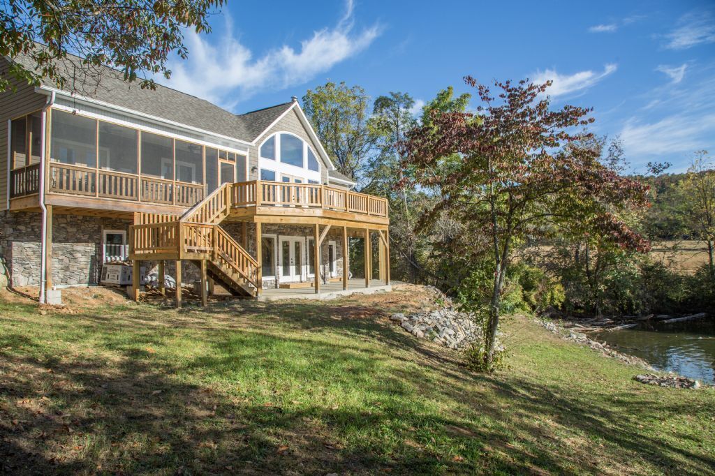 Kick off your shoes and relax at the lake - Driftwood Shores welcomes you to put your feet up and unwind in the charming Appalachian Mountains. Gorgeously styled and uniquely situated, Driftwood Shores boasts a large, flat yard with wrap-around lake access and restful, elegant living space. Five bedrooms, two living rooms, and two covered porches ensures you can comfortably host your whole family with room to spare. Pull your boat right up to the dock and take a break for yard games or spend the day fishing, swimming and having fun on the water. In the evening, you'll enjoy star gazing and fireside chats. When it snows or rains - enjoy a book or movie by the snug fireplace. Visit Driftwood Shores all year round and experience leisure at its best.