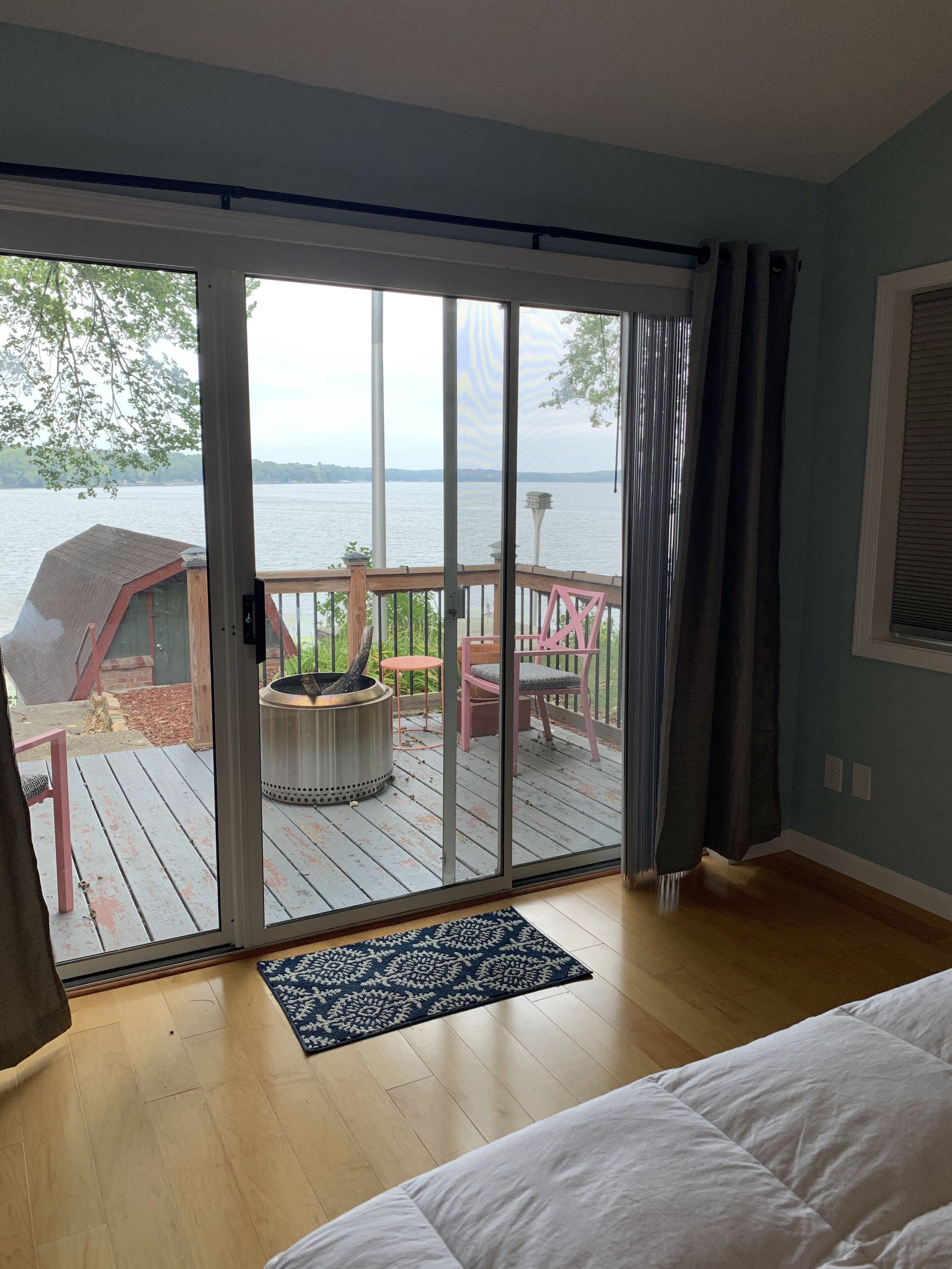 The boathouse features a rec room for hanging out with great views of the water. We have a ping pong table and bags (aka cornhole) for your entertainment. Slide the patio door open so those relaxing on the deck can hear the action. There’s also a fire pit down by the water for evening bonfires (weather permitting).