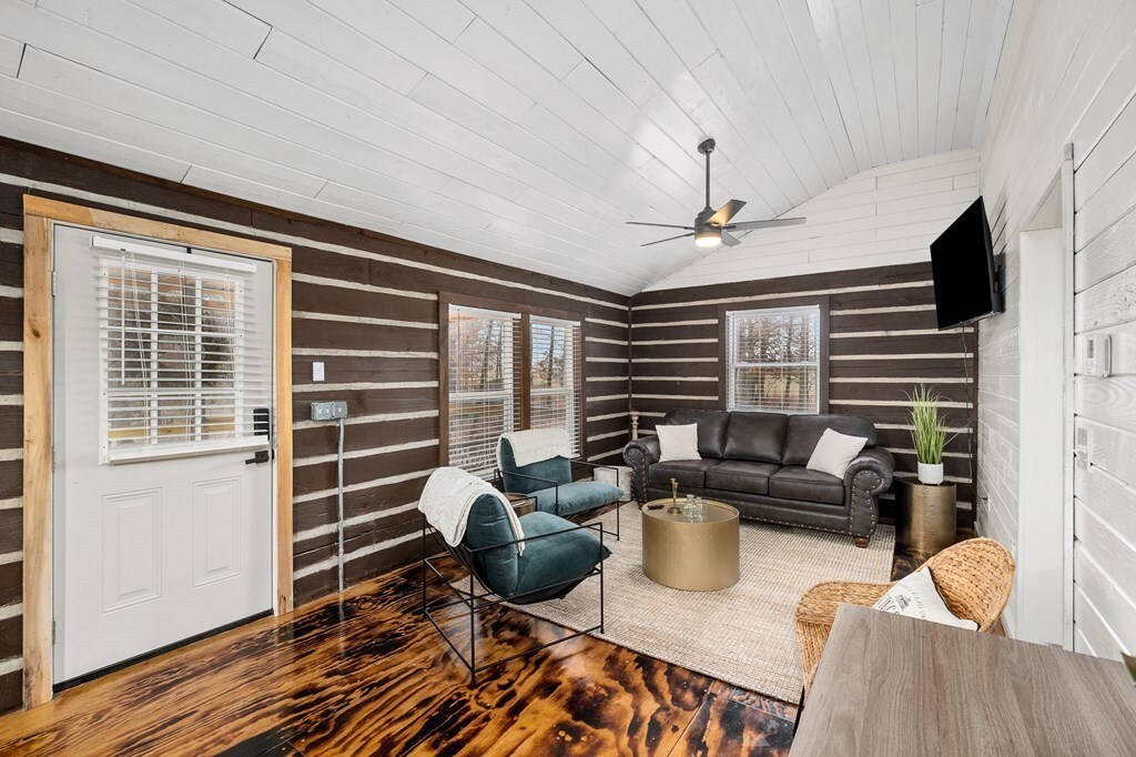 Unplug in this 1,368 sq ft cabin on 3 acres. The fireplace shown in the picture is not operable and can not be used, but feel free to enjoy the firepit just steps from the back of the house (Bring your own firewood), what a perfect way to unwind and completely slow down to enjoy every moment with friends, family, or just yourself. In addition you may use the outside sauna for additional time to detox.