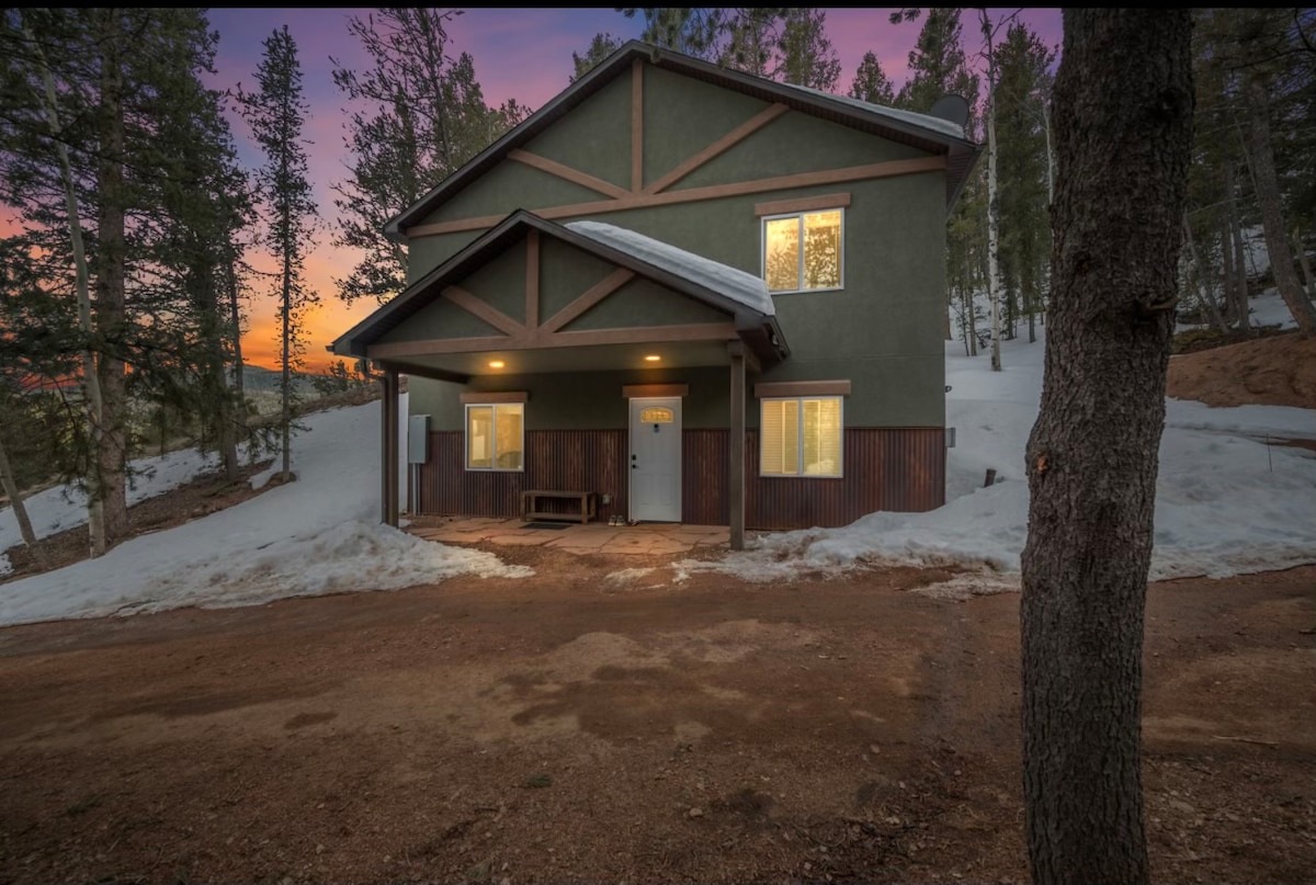 Our cozy cabin sits on the back side of Pikes Peak! Sunny and tucked away in the woods, this charming chalet is a great place to relax, play, or work remotely. Steps away from views of the Rocky Mountains. We are just minutes from amazing adventures and world-class fly fishing. Set with an open floor plan, vaulted ceilings, a wood-burning stove, remodeled bathroom, a large desk, and fast WiFi. The back patio is perfect for leaf-peeping, grilling, and sunset views.