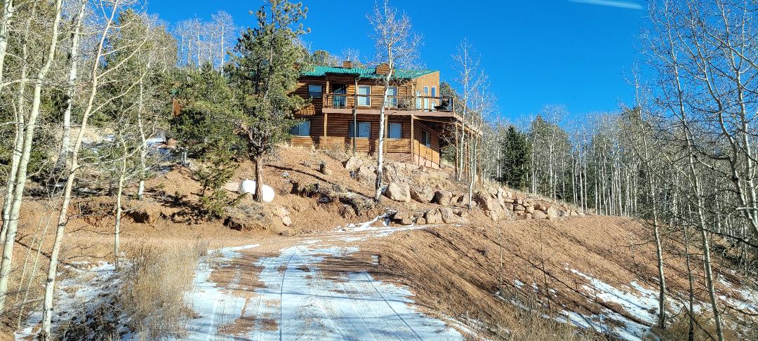 This cabin is secluded at the end of a cul-de-sac on top of a knoll with fantastic views from the Great room, Loft & Deck of the Sangre de Cristo, Collegiate and Pikes Peak mountain ranges, Mount Pisgah included. Tastefully decorated throughout, hardwood floors, vaulted ceilings. Romantic get away for two, or share with the entire family. Enjoy the gas fire place with a good book, or stargaze in the hot tub after a long day of sightseeing. Cripple Creek historic district with gambling/restaurants, Arkansas river rafting, hiking national forests, nearby ski areas.