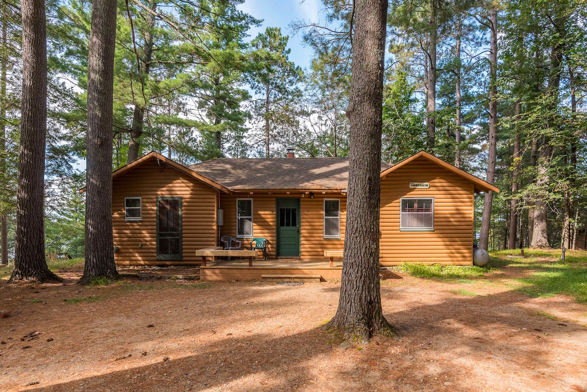 If you are looking for the true cabin experience, look no further! This classic 1950's property includes a 2 bedroom/1 bath main cabin, 1 bedroom/1 bath guest house, and a free standing sauna; all in a stand of mature pine trees that will take your breathe away. The property was purchased by my wife and I in 2017 and was completely renovated. A small but efficient layout, the main cabin has 2 bedrooms with double beds, a 3/4 bath, living room with wood burning fireplace and dining room with great lake views. The kitchen includes a 2 burner cooktop, a microwave/convection oven combo, fridge and a single bowl sink. The indoor space flows to an outdoor area with fire pit and grill. The rental comes complete with a pontoon boat (2018 Bennington), and a new large platform dock that makes spending time on the lake simple and enjoybale! For those that like to stay connected or not miss the big game, both the main and guest cabin have high definition TV's with local cable service, and both structures have free Wi-Fi. In addition, both structures include air conditioning for those muggy summer nights! And for those cooler nights, the property has a free standing sauna with electric heater. Take a dip in the lake afterwards to complete your sauna experience!