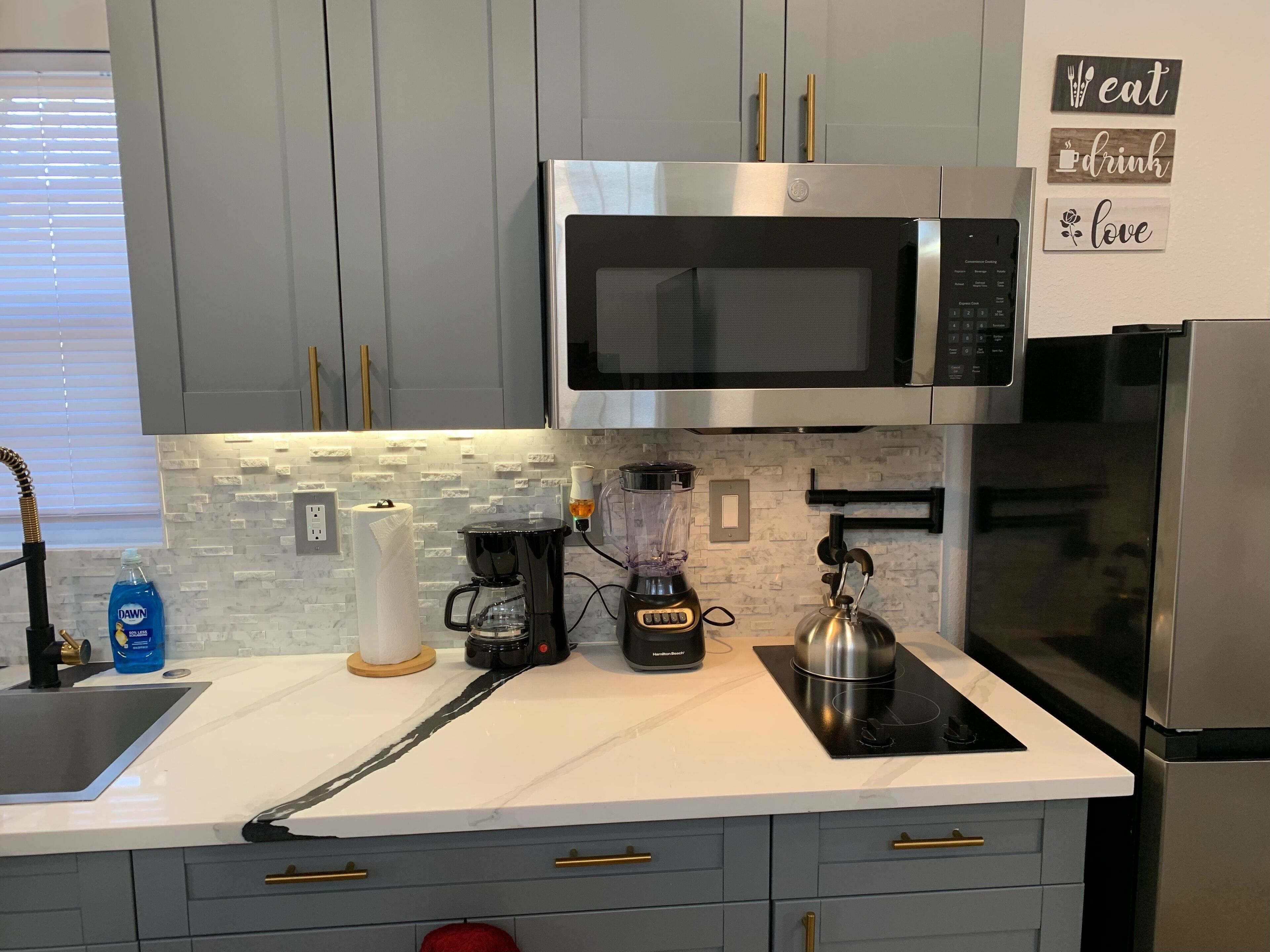 Welcome to our stylish mordern suite, our home away from home which is close to everything in Mansfield! Enjoy a private space to call home during your stay. This clean and well sanitized space include a full bath, laugage storage with a large kitchen to make all delicious meal.Bj offers no contact check in services with free iphone and android charger. We also stock washing liquids and dryer sheet for your convenience. You won't find any other space like this!