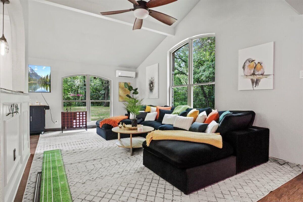 Enjoy a secluded gated retreat on 5 acres of land with no neighbors in sight! This gorgeous home offers direct access to Lavon Lake–bring your own boat, jet skis, or kayak for fun on the water (boat/trailer parking is available). Or explore the property trails that are ideal for hiking, dirt biking, and ATVing.