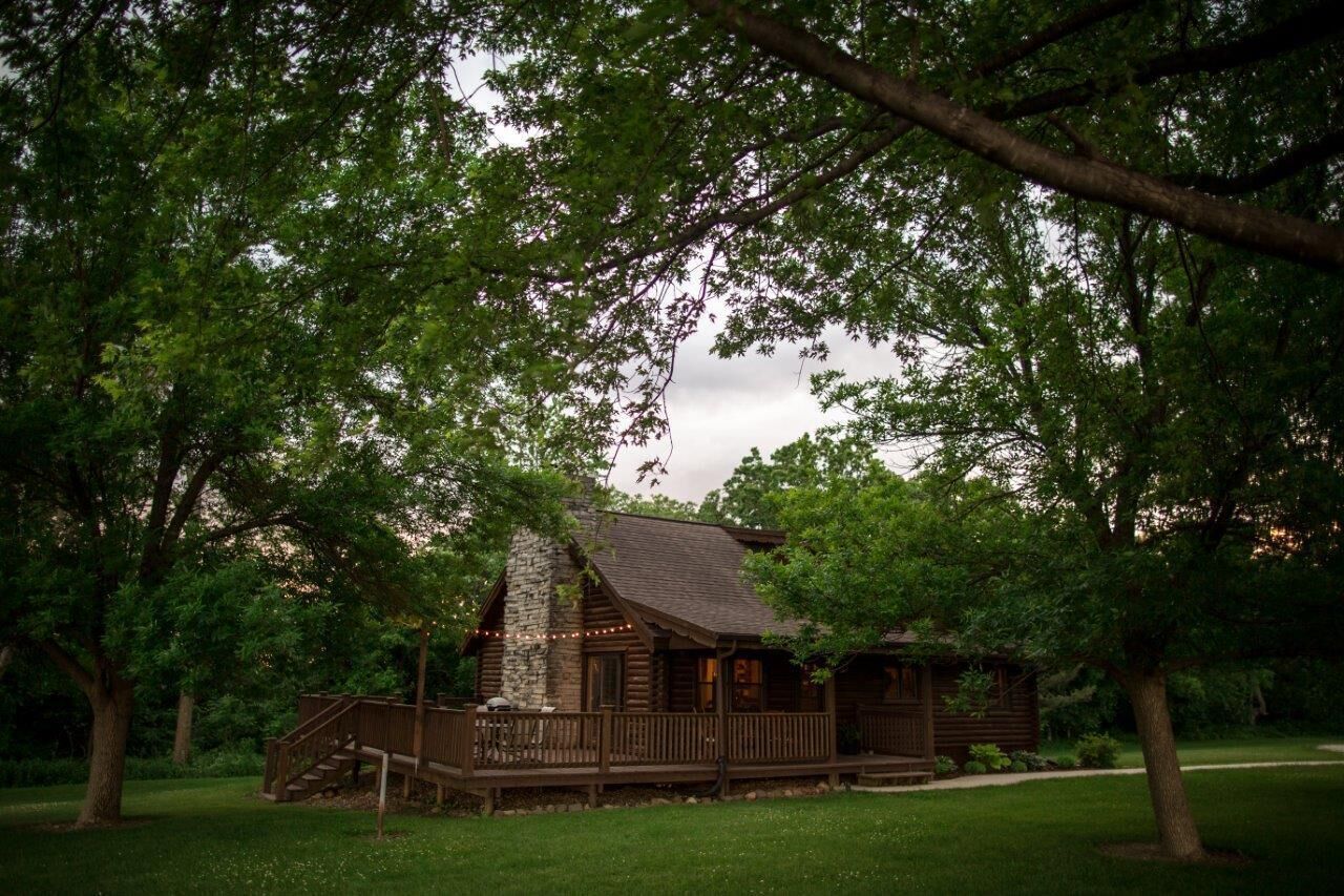Our hand-crafted log cabin is located on a little gravel road in a lovely rural setting just outside of Fort Atkinson, Iowa.