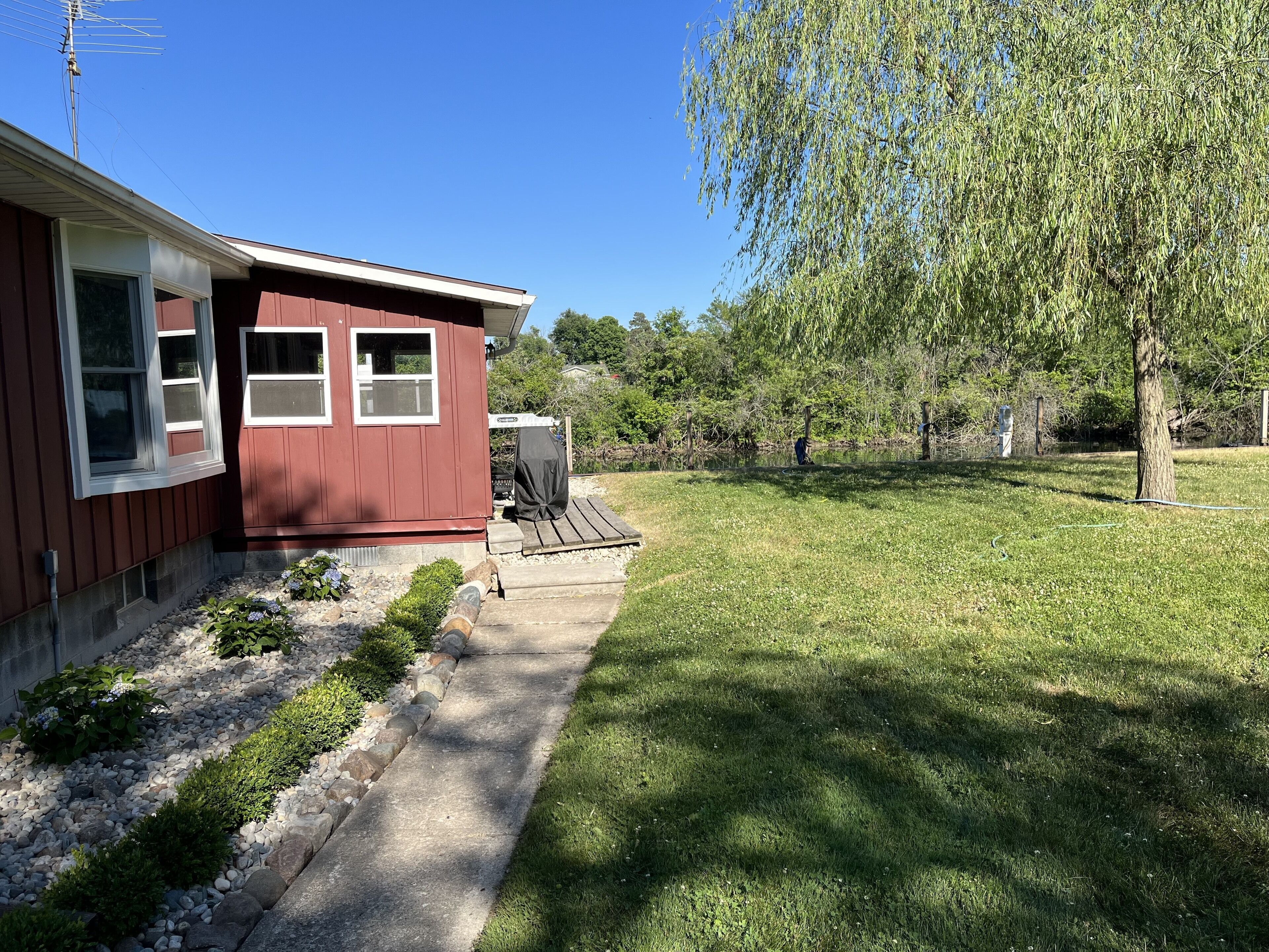 The property is on a point of the island. This gives you 270-degree views, main view of Pontiac Lake, the beach and Gale Bay. It's great to have the sun on the front of the house and to the rear of the house, you'll find shade under the large maple tree. In the evening you'll enjoy breathtaking sunsets.