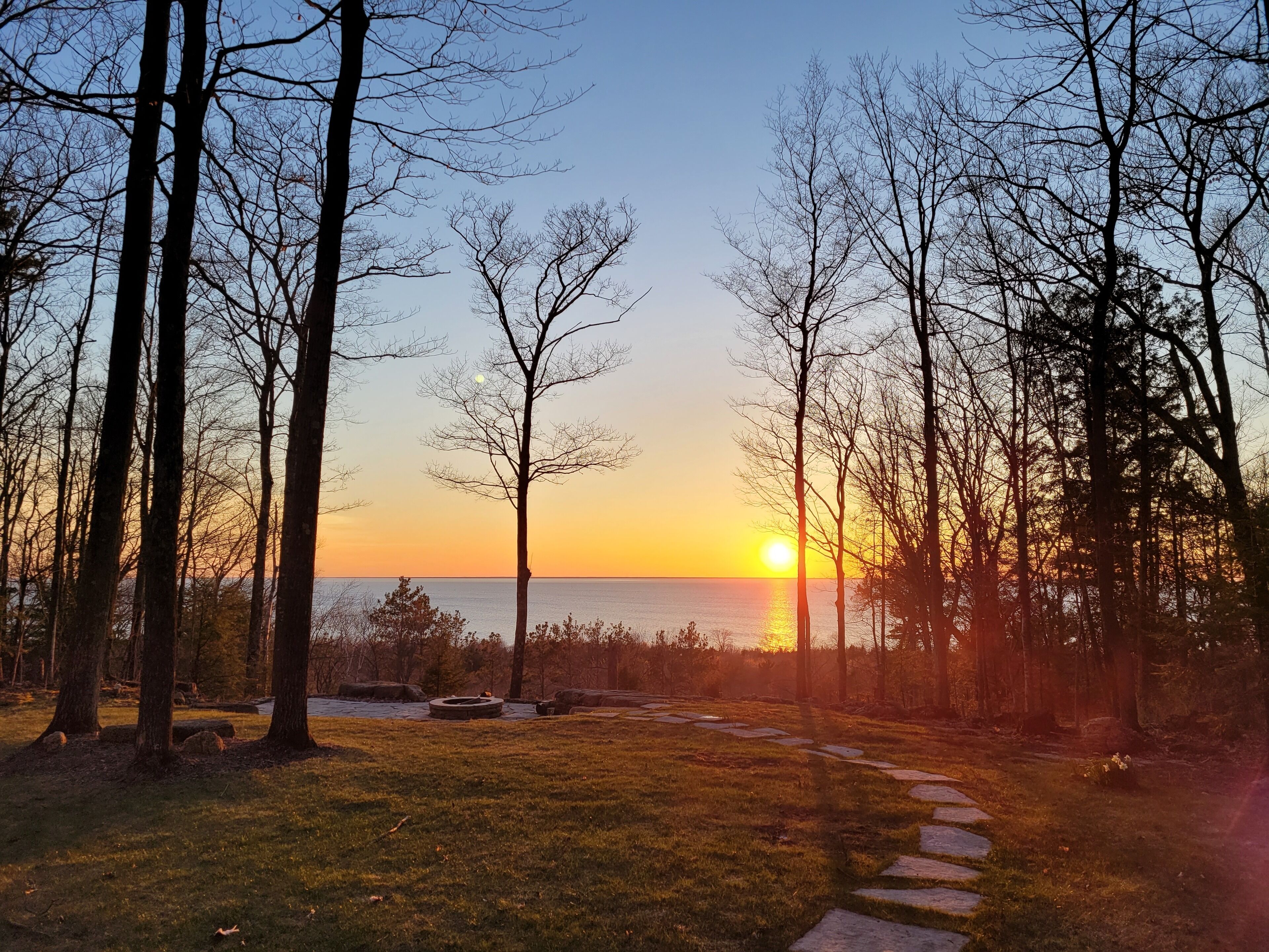 View the sunrise over Sand Bay Larsen’s Reef, which is one of the hottest fishing spots in Door County, the Sturgeon Bay shipping channel and the big waters of Green Bay.