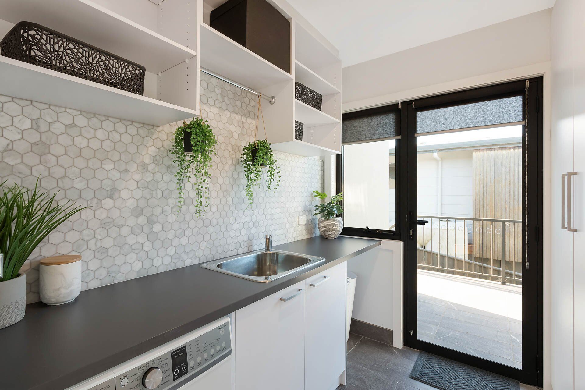 Down the hall you will find the laundry and an abundance of hidden storage areas.