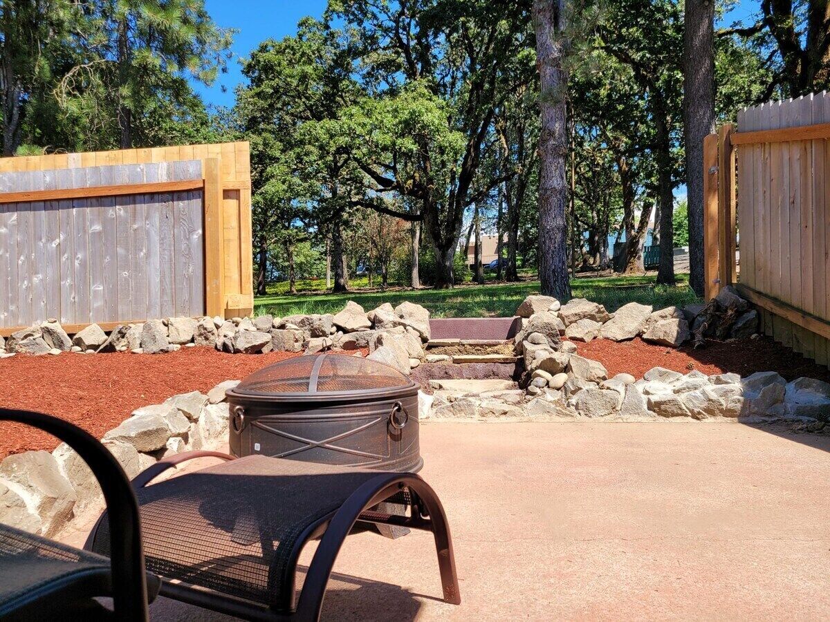 The back patio is a indoor/outdoor space that provides a comfortable covered seating and eating area, and blends into a custom Pacific Northwest style Zen garden, which is filled with interesting plants and artwork. It is a wonderful place to spend some time outside relaxing, listening to the chirping of birds in the morning or watching the stars and moon at night. Electronics can be plugged in. We do live in a quiet peaceful neighborhood and ask load noise be moved indoors by 10 pm on the weekdays and midnight on the weekends. The garden hosts a collection of rare and unusual ferns and shade plants growing out of the stonework and from big wooden barrels. Round river rock and a colorful gravel path takes you around the corner to your personal side yard.