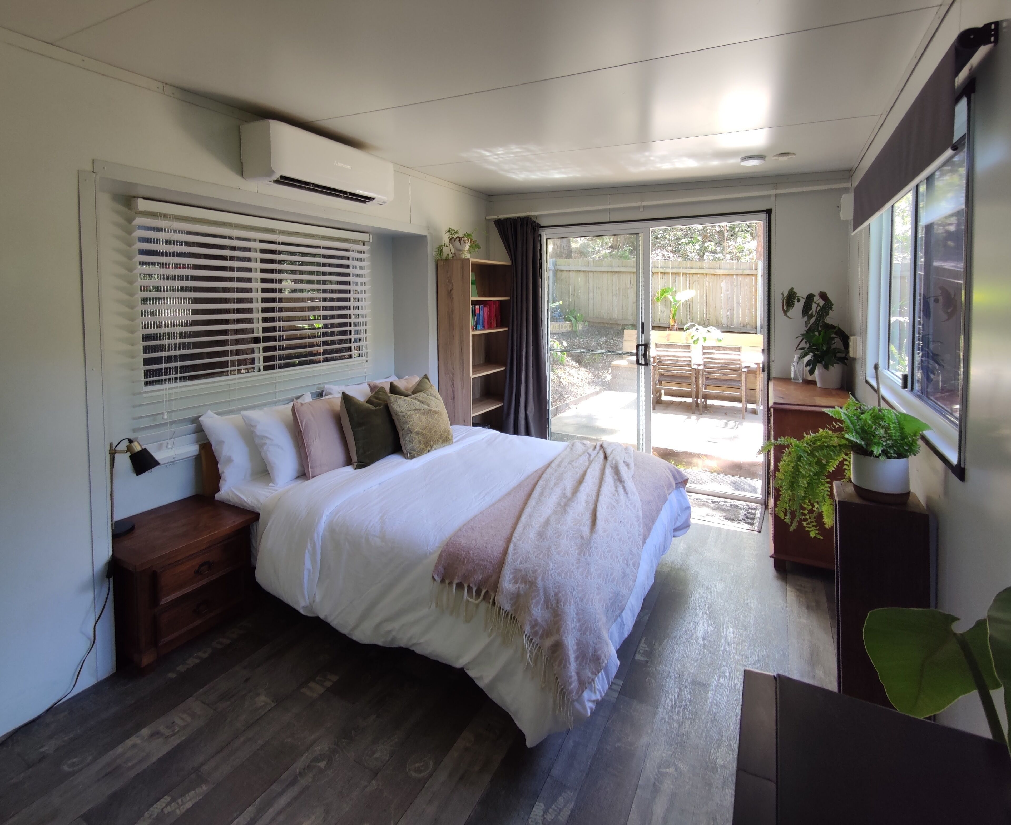 This great little tiny home retreat is a restful place to come back to after enjoying all the sunshine coast has to offer. 5 minutes from the gorgeous town of Eumundi (within reach of the Imperial Hotel pub courtesy bus). 12 minutes from Noosaville, Noosa river and the tranquil lake Weyba, 15 mins from Peregian surf beach, and 19 minutes from Hastings st. The cabin is cosy with a tiny kitchen, bathroom and private courtyard, featuring private parking. Complimentary WIFI, Netflix, Stan & Binge.