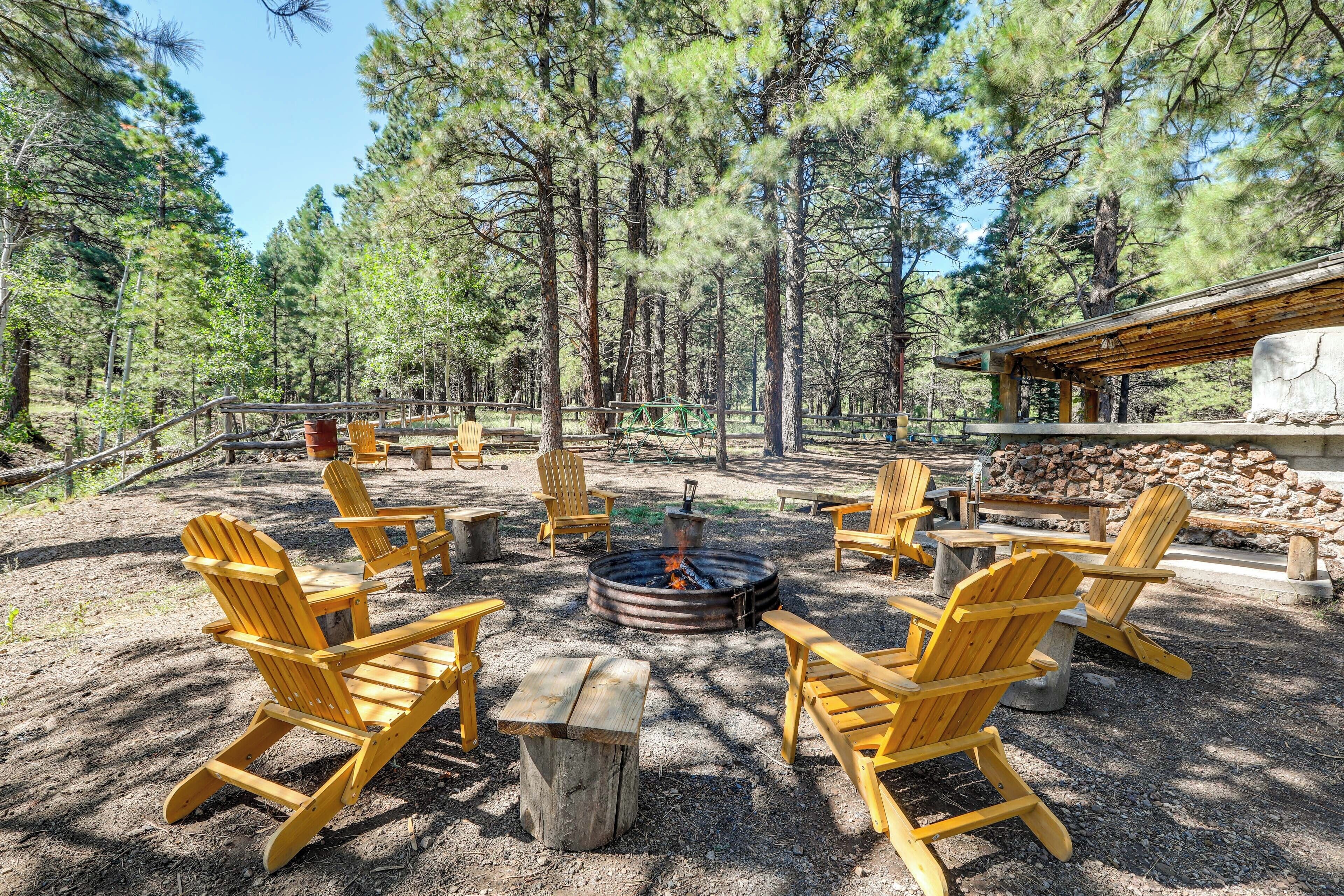 Take the road less traveled to this off-the-grid Flagstaff vacation rental! The 6-bed, 3-bath cabin provides the perfect backdrop to all your outdoor adventures. Work up a sweat on the court or watch the kids play on the swings, then let the smell of BBQ guide you back to the covered patio for dinnertime. After, end the day with s'mores around the fire pit.