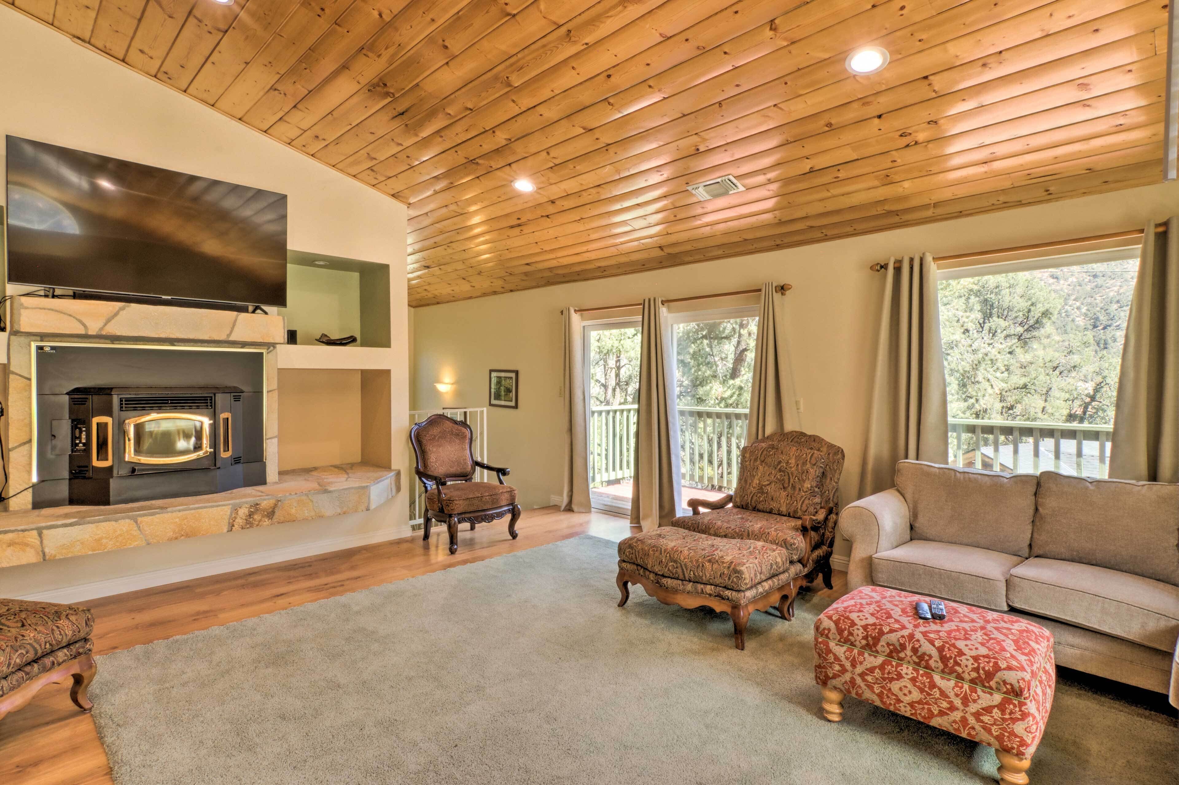 No cleaning fees or extra fees for dogs! Starlink Wi-Fi on site. 3,000 square foot home with a flagstone fireplace, a huge chef's kitchen & a wide open floorplan. Breathtaking Mountain Retreat near Mt. Pinos & Frazier Park. Stroll on 45 acres of private forest trails at 5,400' in elevation - the property is exclusively yours to enjoy. Adjacent to Los Padres National Forest. Relax & breathe in the fresh forest air. AT&T, T-Mobile, Sprint & Verizon provides 2-5 bars. Only 75 miles from Burbank.
