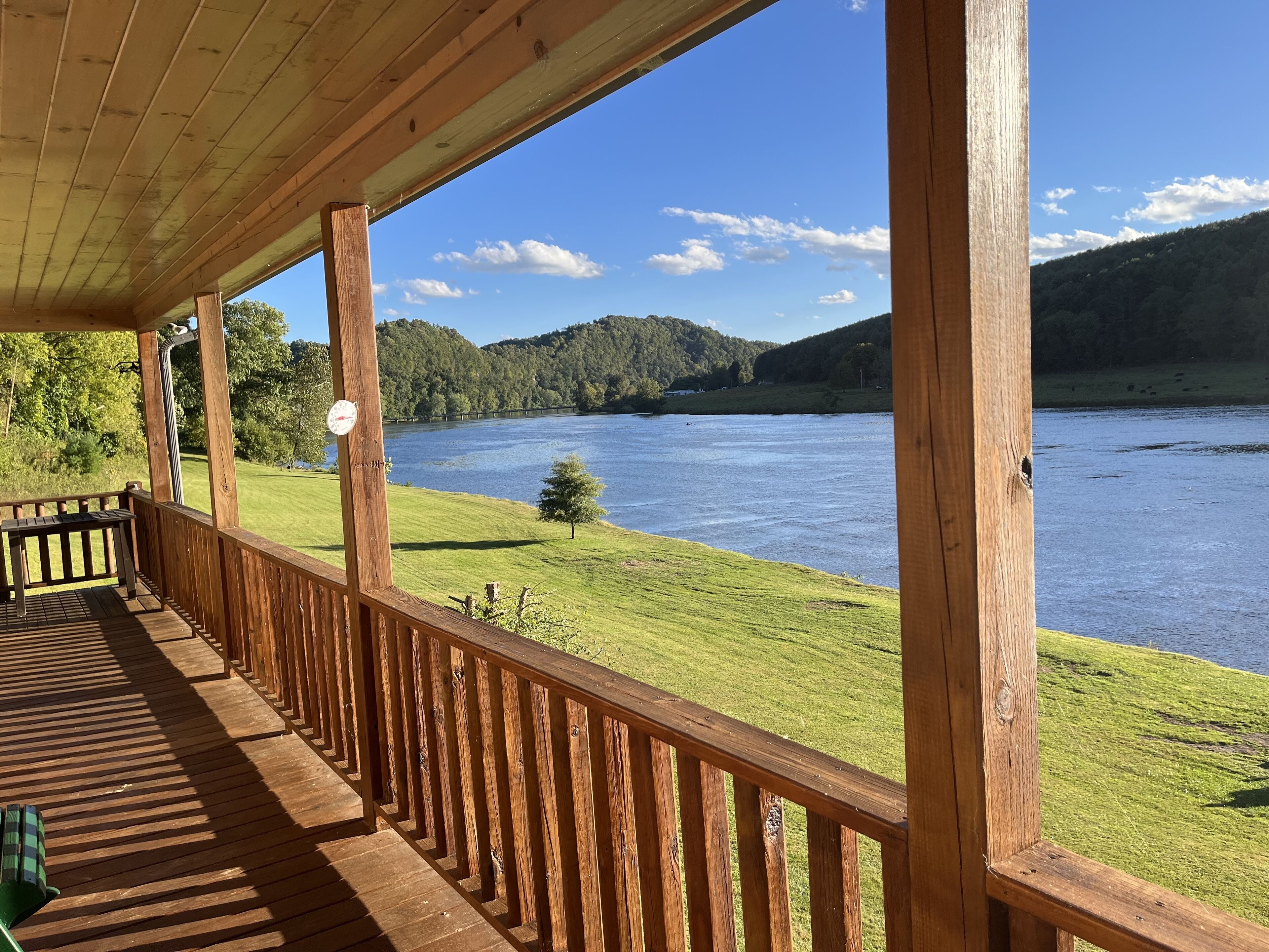 - "We had five of us and the house is well appointed, spotless, beautiful view and we could not have been more impressed with the location. We rocked on the porch watching the river with is right out front. Friends and family came over and we ate a great dinner cooked on the grill. Off the beaten path, quiet and very very peaceful." - "Property was clean and well appointed. We enjoyed the river view. Beds are super comfortable." - "We thoroughly enjoyed our stay! The cabin and location were both perfect!"