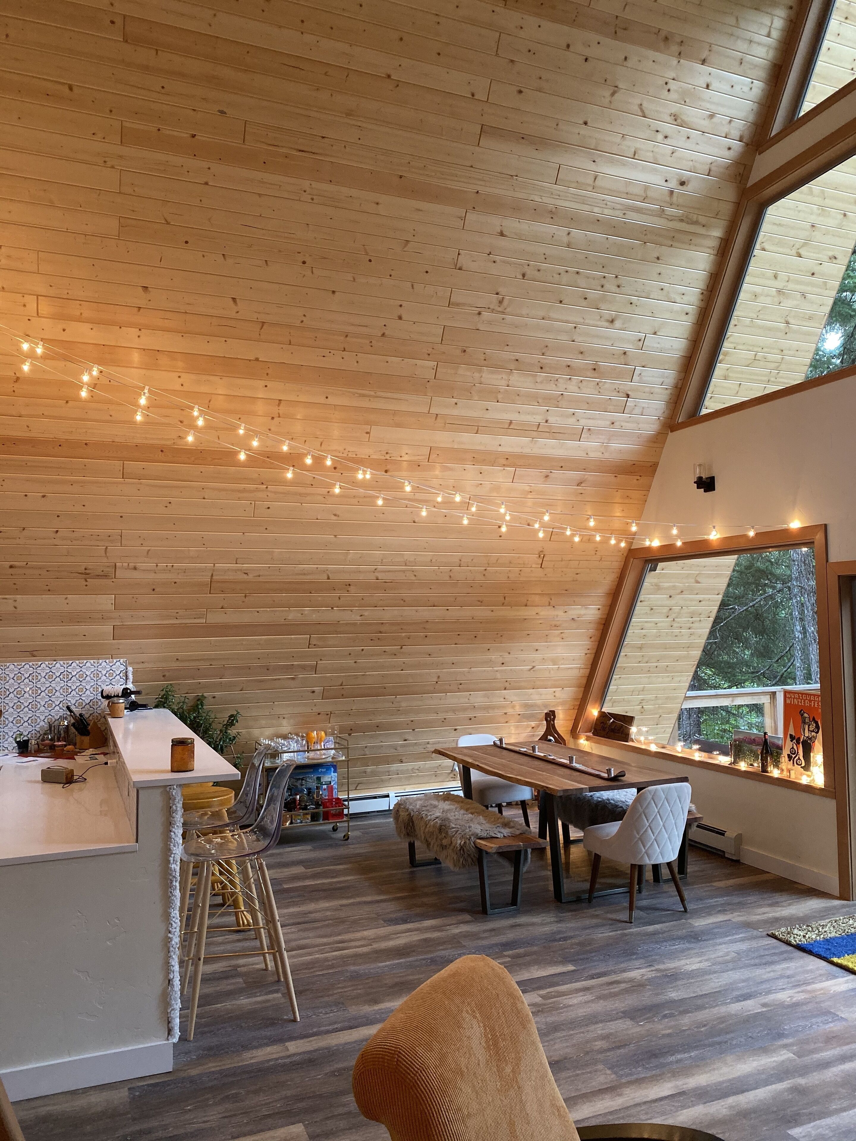 I don’t mind events such as birthday parties, bachelor/bachelorette, even weddings. We had a Harry Potter themed birthday party (see pics) and the holidays are always amazing in Girdwood. All I ask is you and your guests are respectful of the space and don’t trash it. Just please no glitter.