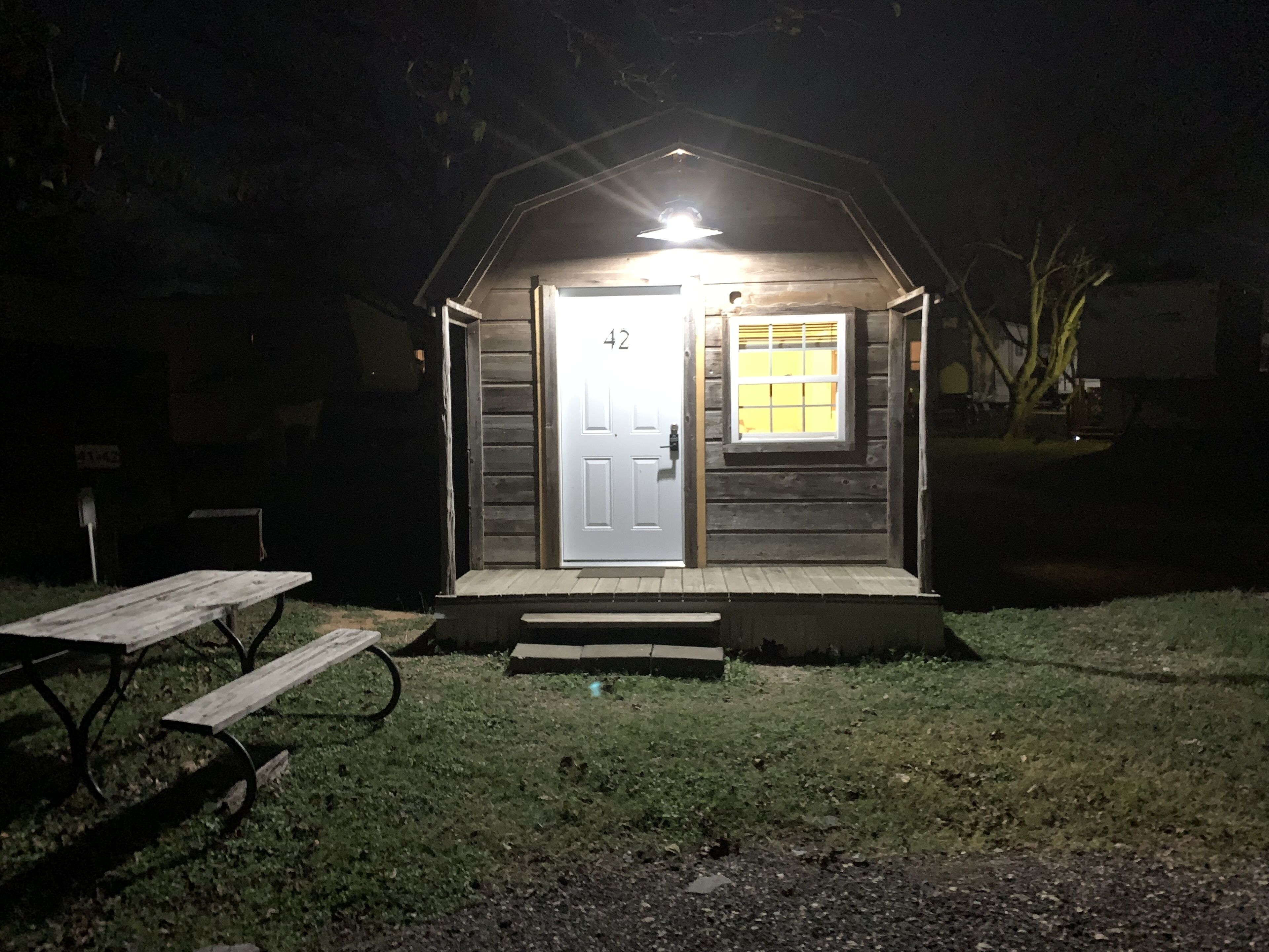- "It was a pretty good deal and it was a cute little cabin." - "Such a great place to stay!" - "Very good for what I was doing. The mattress was hard kind of lumpy. Very clean. Everything I needed was there. Overall pleasant experience." - "Positive: there was more than enough towels. The A/C was on so it was nice to get in after a long drive. No smells on anything. Pillows were super clean. Nice shade to park the truck. Close to everything. There was coffee, filters, sugar, salt and pepper. Negative: bed sheets were really old and cheap polyester. There was cockroach poop in the dirty microwave (I didn’t see poop or roach signs anywhere else). The floor was sticky (could be the kind of cleaner used). The shower tub thing needs to be fixed (there’s a crack on it, and it moves like it’s about to cave in because there no support under it). No liner in the shower curtain so it was hard not to wet the floor and shower curtain."