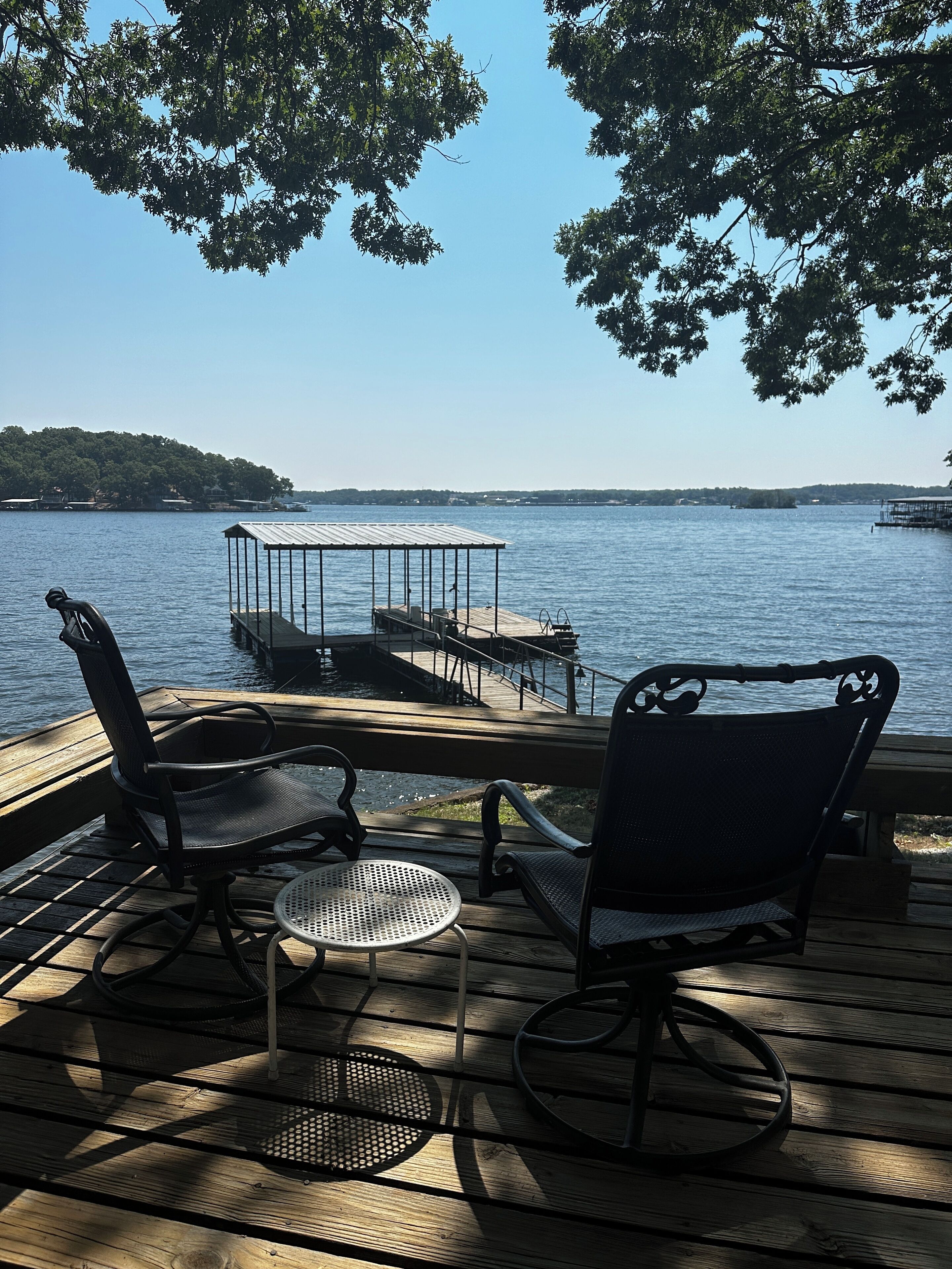 This lake front property is shaded with several full size trees. Guests enjoy relaxing on one of the two patios and taking advantage of the covered dock. Guests can rent the on-site boat slip (10' X 24') for $10 per day.
