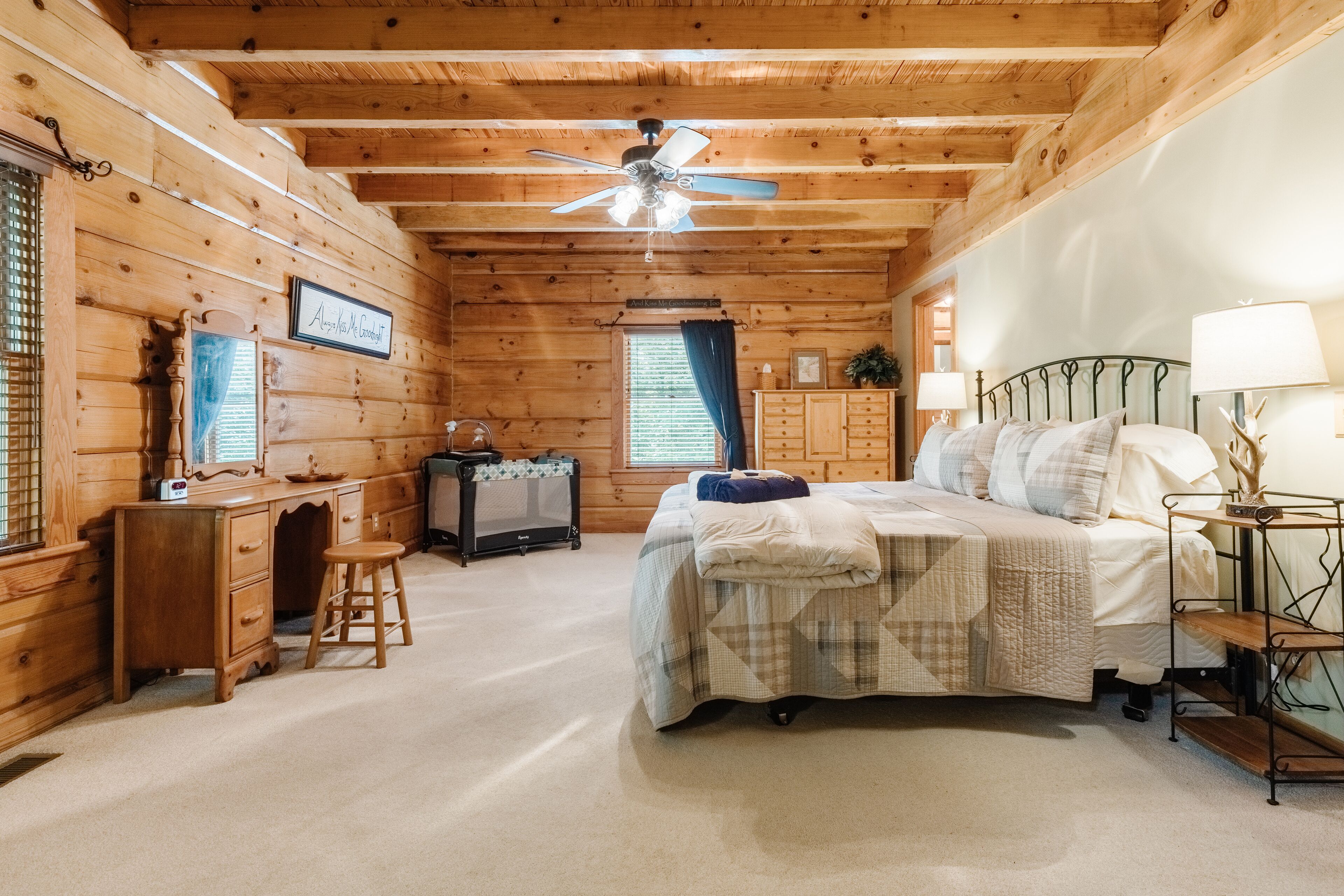 *Bedroom 4 is in the lower level, the King bed, privacy and custom forest wall mural will have you sleeping like a bear.