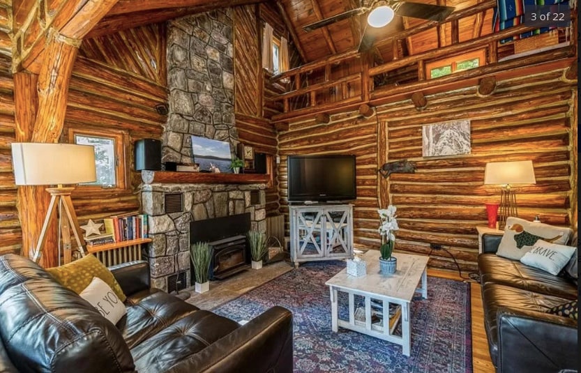 The traditional log cabin includes modern amenities like high-speed internet, heated bathroom floors, and a fully equipped kitchen. You’ll have access to the entire home, including a stunning lakefront backyard. Permit No. 78-2-1
