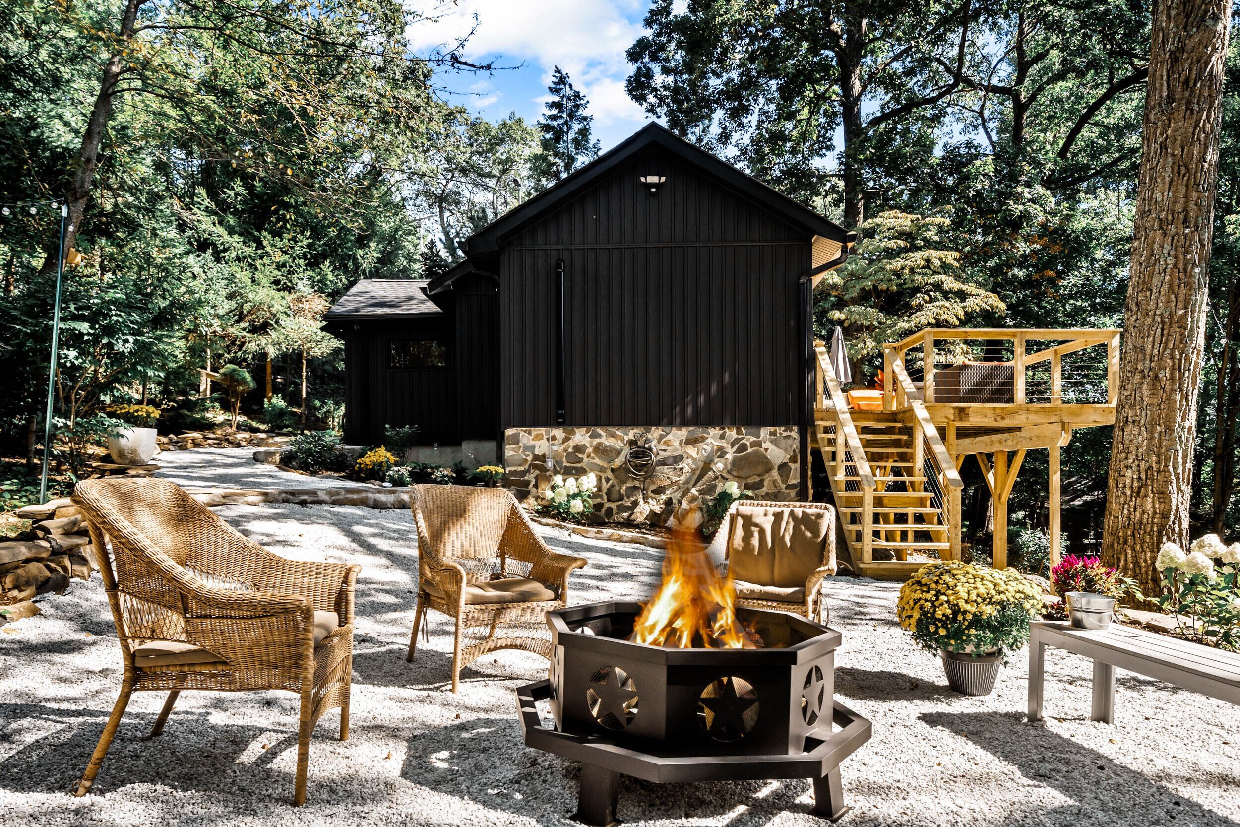 And now—step outside. This is where the magic happens. The yard is made for memory-making. Our brand new shed bar is the ultimate hangout zone—pair it with the fire pit, string lights, and chairs, and you’ve got your very own woodland lounge. S’mores, local wine/beer, ghost stories—your pick.