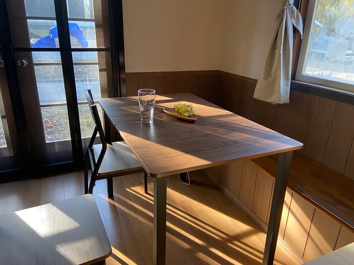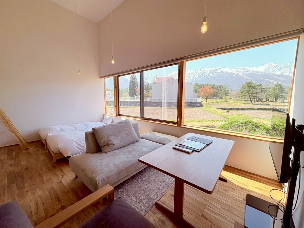 We are located in the center of Hakuba, 5 mins walk to free shuttle stops heading the slopes, 10 mins walk to restaurants. It is still a quiet residential area, good to secure privacy and end enjoy nature.