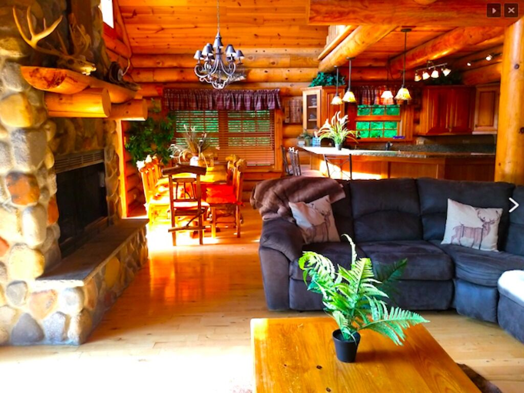 Our Log Cabins Sleep seven, two full beds and single bed in loft. Full Kitchen. 3/4 bath.