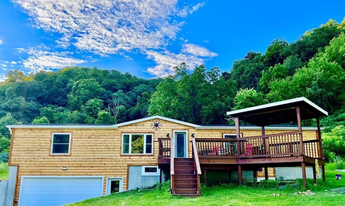 Longview Lodge is a 2 story 6 bdrm 2.5 bath log home just outside of Harper’s Ferry and close to the Harpers Ferry Boat Launch and Mississippi River. New Bathrooms, New Kitchen, Jetted Tub in Master Bath and a Pool Table on Lower Level. Home is 1800 sq ft with a covered porch, private rear deck and covered outdoor Hot Tub, a brand new swimming pond with waterfalls, and an outdoor Firepit.