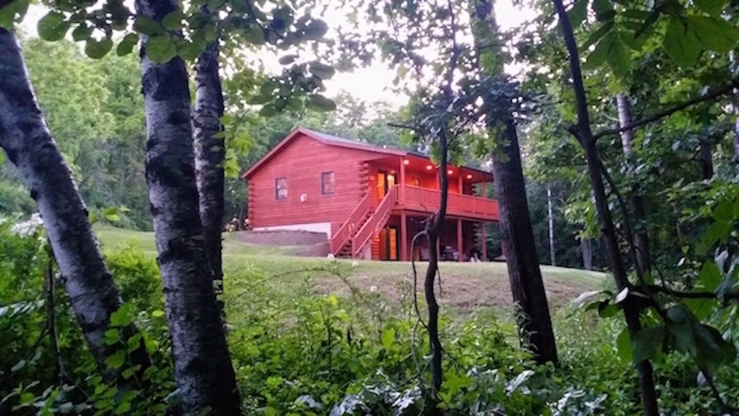 Longview Lodge is a 2 Level 6 bdrm 3 bathroom log home in a valley just West of the historic river town of Harper’s Ferry and the MIssissippi River.