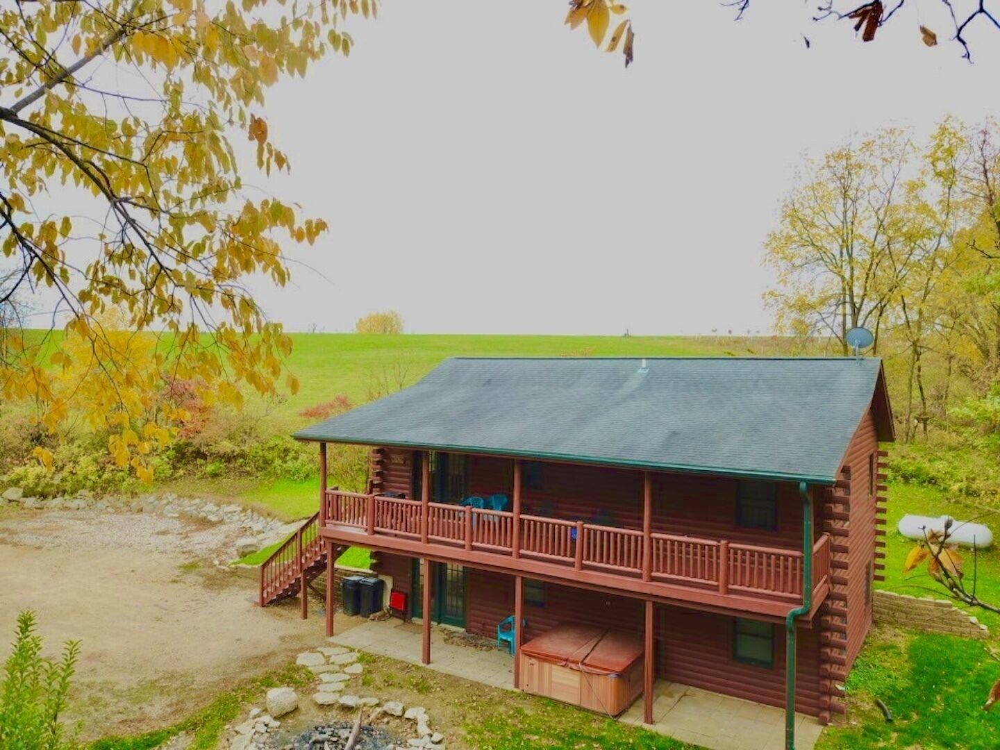 Longview Lodge is a 2 story 4 bdrm 3 bath log home with a New XL Swimming Pond, Waterfalls and Hot Tub Jacuzzi located just outside of Harper’s Ferry, Iowa and right near the Mississippi River.