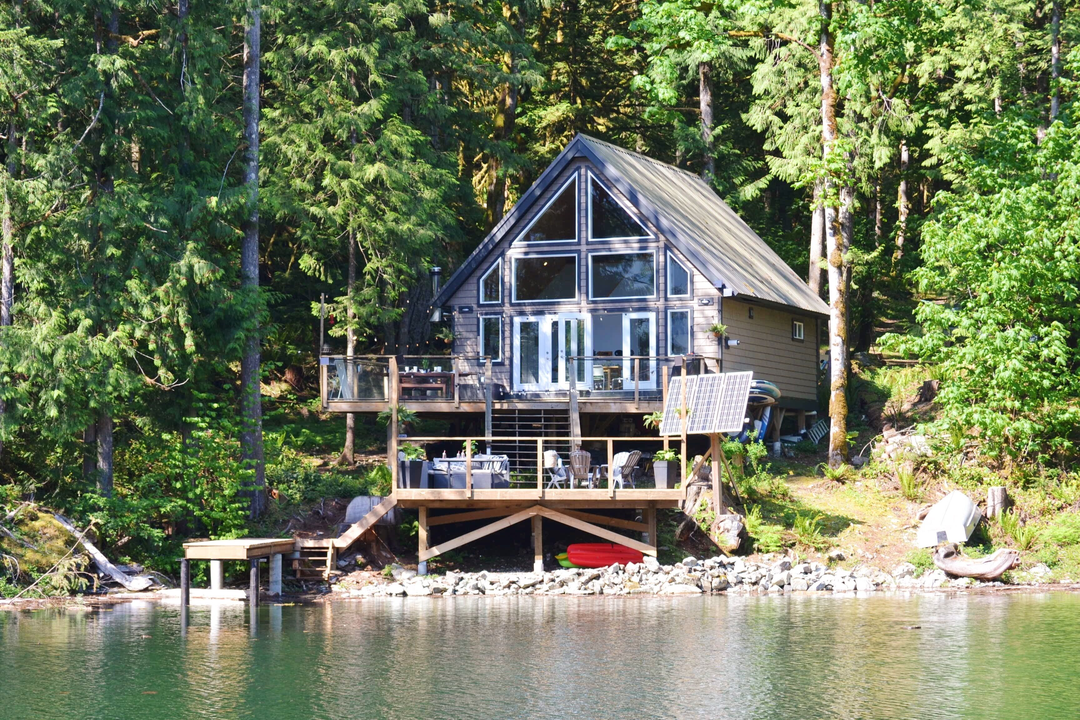 Escape to our lakeside cabin on Harrison Lake, nestled in a picturesque location. Enjoy breathtaking views from the large deck overlooking the serene waters. Dive into activities like swimming, paddle boarding right at your doorstep. Accessible 35 mins down the scenic East Harrison FSR (4x4 recommended). Experience the off-grid charm with solar power, compostable toilet, and water pump. Please bring your own linens. Find relaxation and adventure in this idyllic lakeside retreat.