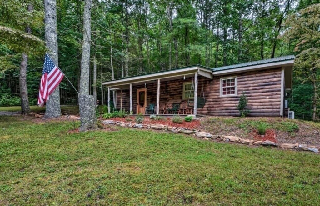 This creekside two bedroom, two bathroom cabin with an awesome back porch is the ultimate relaxation space.